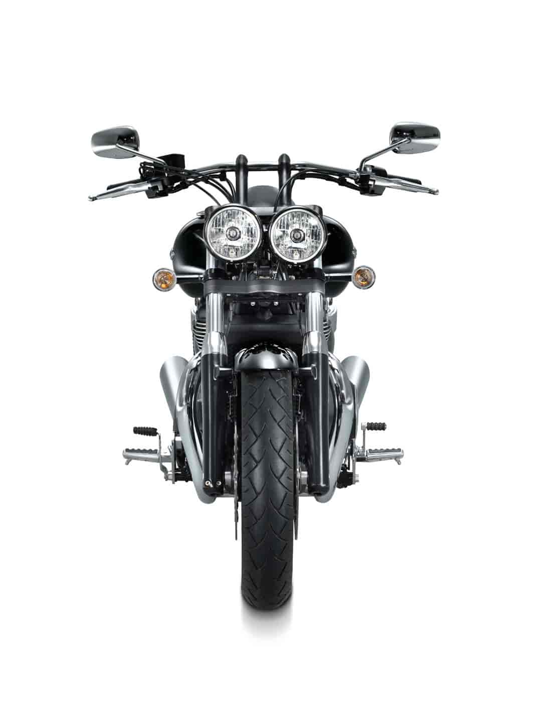 Triumph’s iconic twin headlights, made famous on the Rocket III and Speed Triple models, and drag bars perfectly fit this street rod’s aggressive nature and are complemented by the gloss Jet Black or classic Matt Black paint options, and the matching blacked out engine cases.