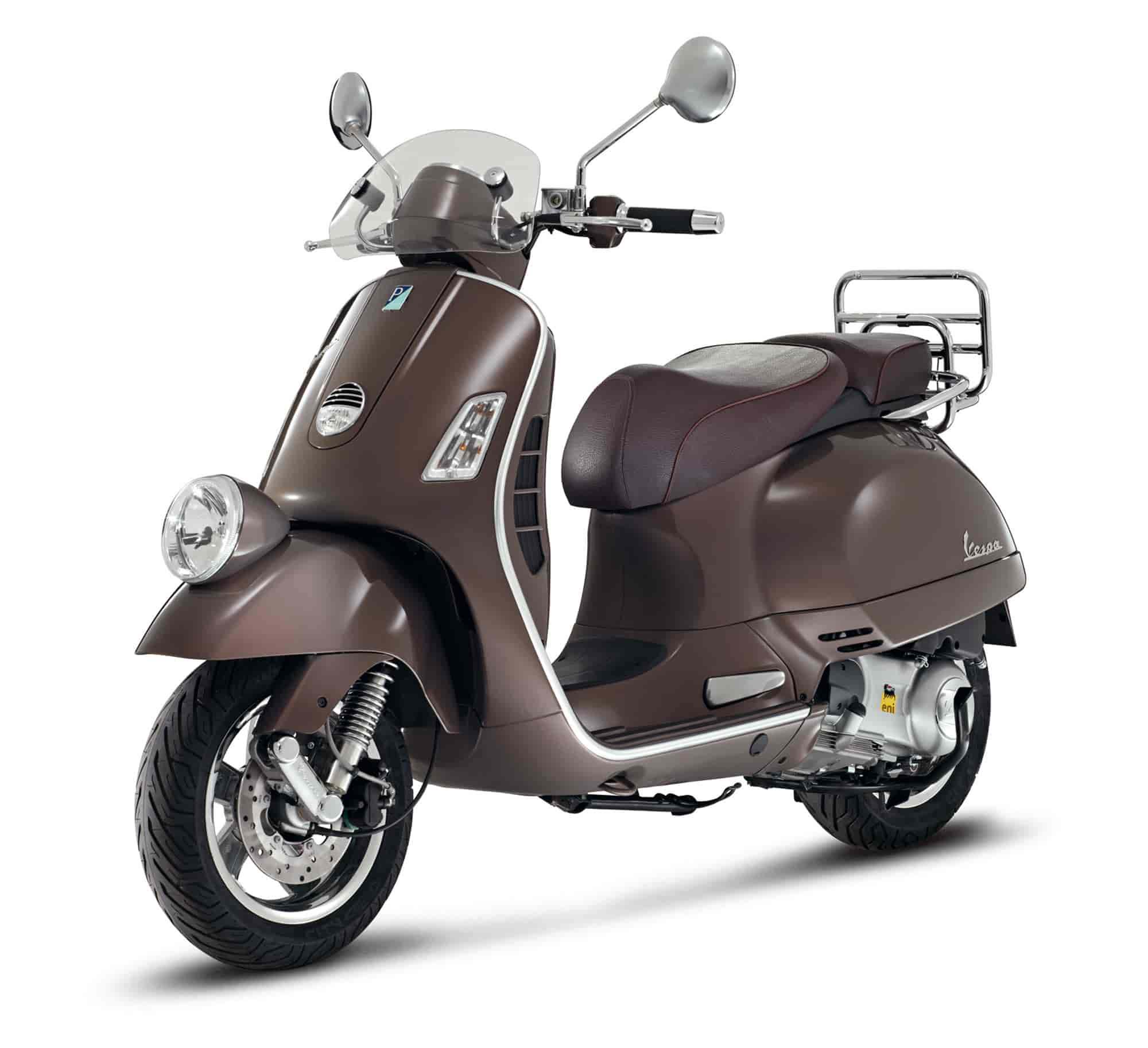 Vespa, the emblem of style, fashion and distinction, dedicates an exclusive collection of unique pieces to the most famous and glamorous fashion runways: Vespa GTV and Vespa LXV, the most prestigious vehicles in the range. New models which for 2012 dress up in the elegant “Marrone Etna” colour which enhances the timeless lines.