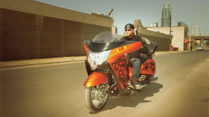 The Victory Arlen Ness Vision makes 1,000-mile Iron Butt trips easy. This is a spectacular, full-featured luxury-touring bike that spoils riders with comfort and convenience, and thrills riding enthusiasts with its power, ride and handling.