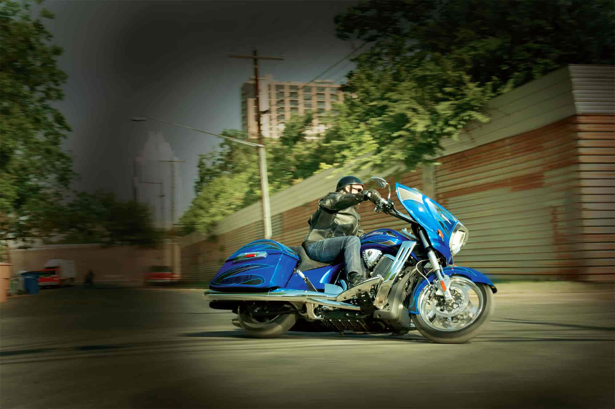 The 2012 Cross Country is just waiting for you to push it to its limits. With a custom suede seat, you can ride for days before you even notice how many miles have been crossed. The Ness accessories make the bike even more unique, unlike any other V-Twin cruiser motorcycle that you’ll see on your journeys. Combining Victory power and the signature Cory Ness style – it really isn’t fair for the competition.