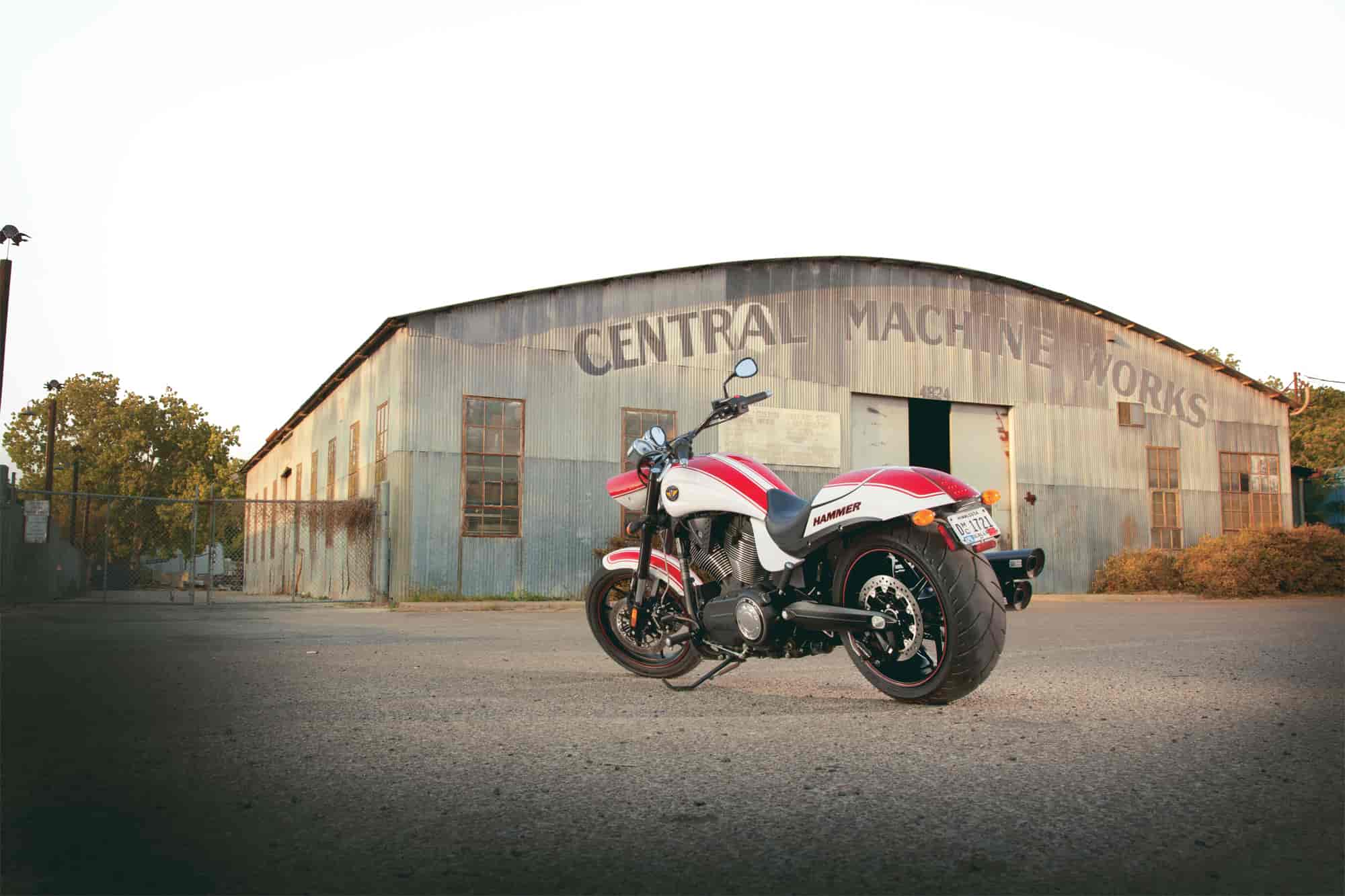 At the intersection of sporty styling and cruiser muscle are the Hammer and Hammer S. Minimal, sporty bodywork highlights the meaty 250mm rear tire and the dual disk brakes up front. The Hammer S is a limited-edition model with special muscle car-inspired styling.