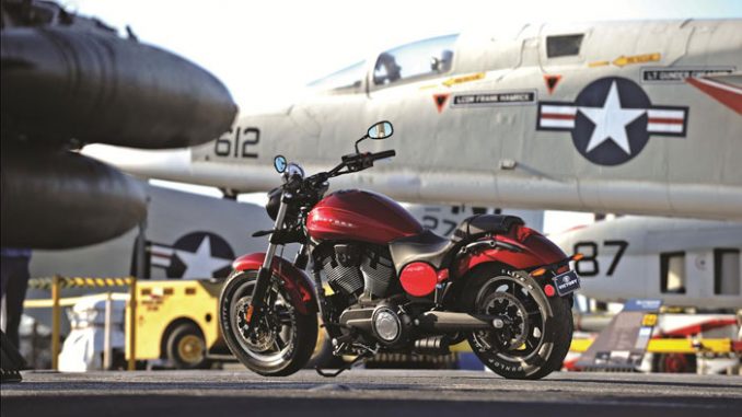 The fuel tank features signature Victory styling, the new headlight has crisp design lines and the side covers have oval faces just waiting to be customized. The frame, dual exhaust, triple trees, cases, cylinder heads and more are blacked-out. The Judge says “drop the polish and pull the trigger.”