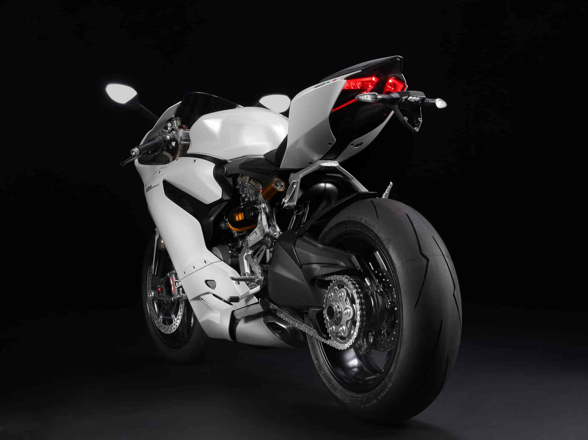 All 1199 Panigale versions roll on Pirelli Diablo Supercorsa SP tyres, road-going race replicas of the official World Superstock 1000 tyres. While the front uses a 120/70 ZR17, the 200/55 x ZR17 represents the widest rear tyre ever fitted to a production Ducati Superbike.