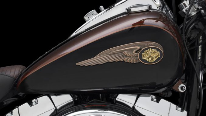 A highlight of each 110th Anniversary Edition model are solid bronze fuel tank badges, plated in black nickel and then distressed to highlight the bronze. A bright gold-tone Bar and Shield cloisonné is inserted in the main body of the “single wing” badge while each motorcycle will carry other model-specific anniversary badging, trim and a serialization badge.