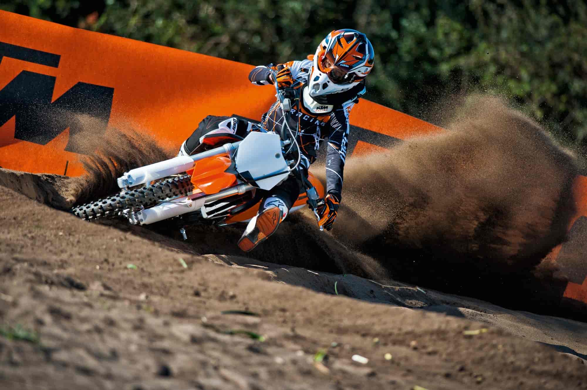 The restyled, aggressive looking bodywork provides improved ergonomics and is directly derived from the new SX generation. Together with the frame, the tank, spoiler, airbox and newly developed seat form a homogenous unit, ensuring perfect harmony between rider and motorcycle.