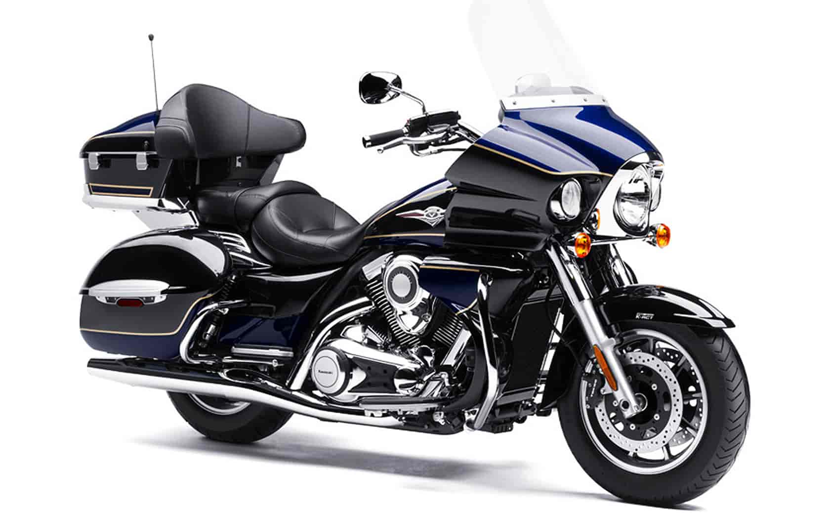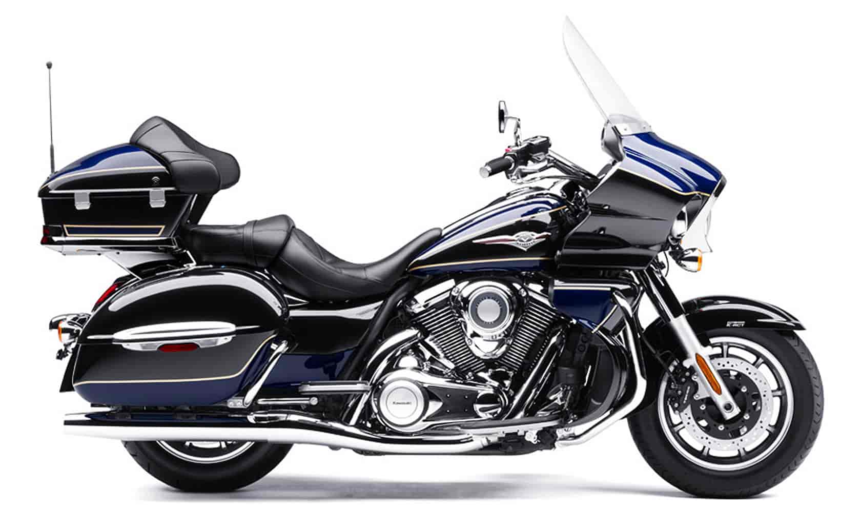 Voyager boasts all the details riders need for adventurous journeys: a smooth and torquey 1,700cc V-twin powerplant, large frame-mounted fairing, beautifully integrated luggage that stows a week’s worth of gear, a comfortable saddle, electronic cruise control, high-fidelity sound system, optional K-ACT anti-lock/integrated braking system and the sort of design acumen and long-term dependability Kawasaki is renowned for.