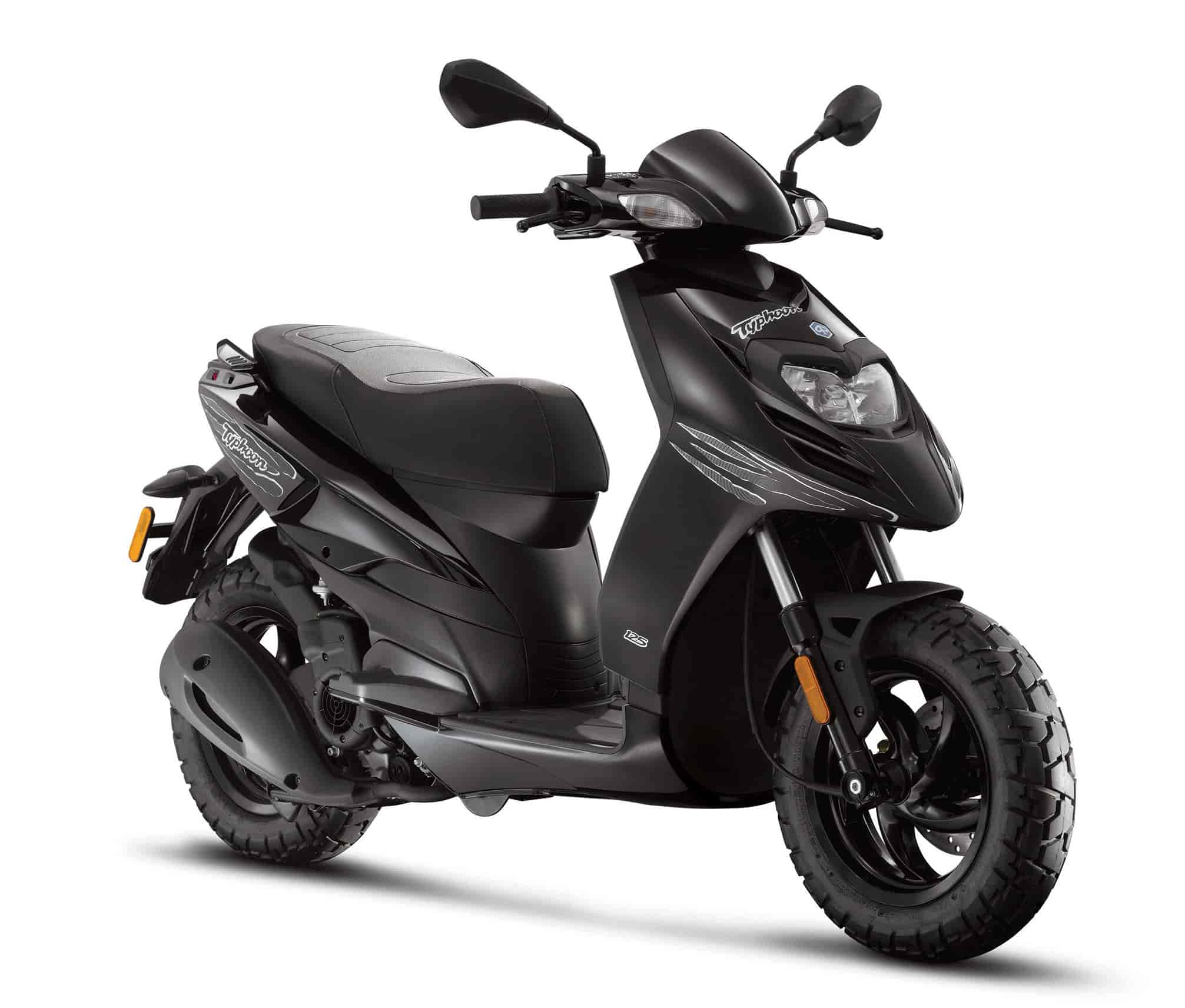 Piaggio Typhoon, a genuine scooter icon with over 500,000 examples sold to date, has been completely revised and now appeals to an even broader clientele, with the classic 50 cc 2-stroke engine now joined by a feisty carburettor-fed 125 cc 4-stroke to cater