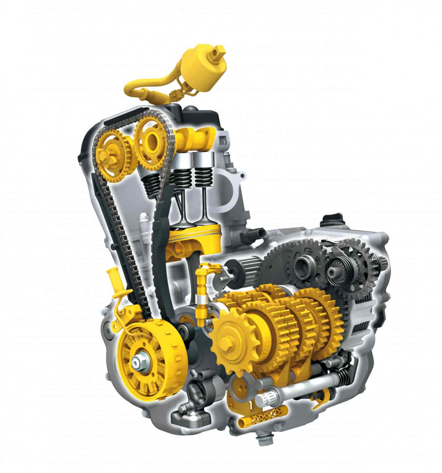 The crankcase reed valve has been revised for more efficient lubrication. The new oil strainer has a stronger magneto to capture contaminants from the engine oil. Together these changes contribute to better throttle response and smoother power delivery.