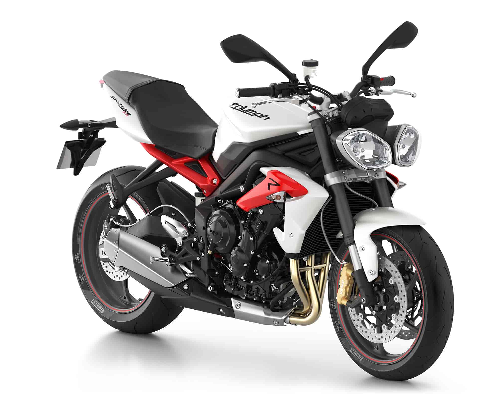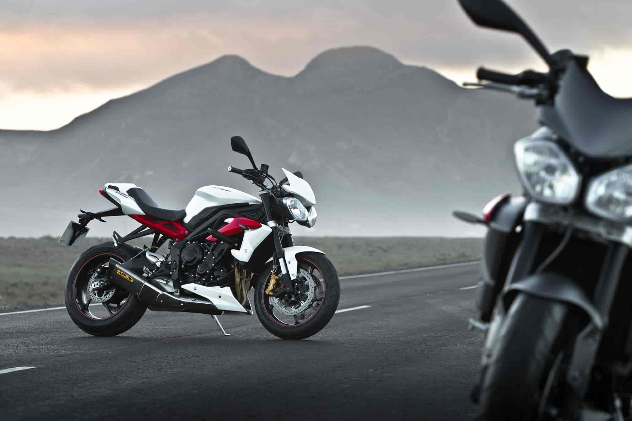 Three color options are available for the new Street Triple R in 2013: Phantom Black, Crystal White and Matte Graphite.