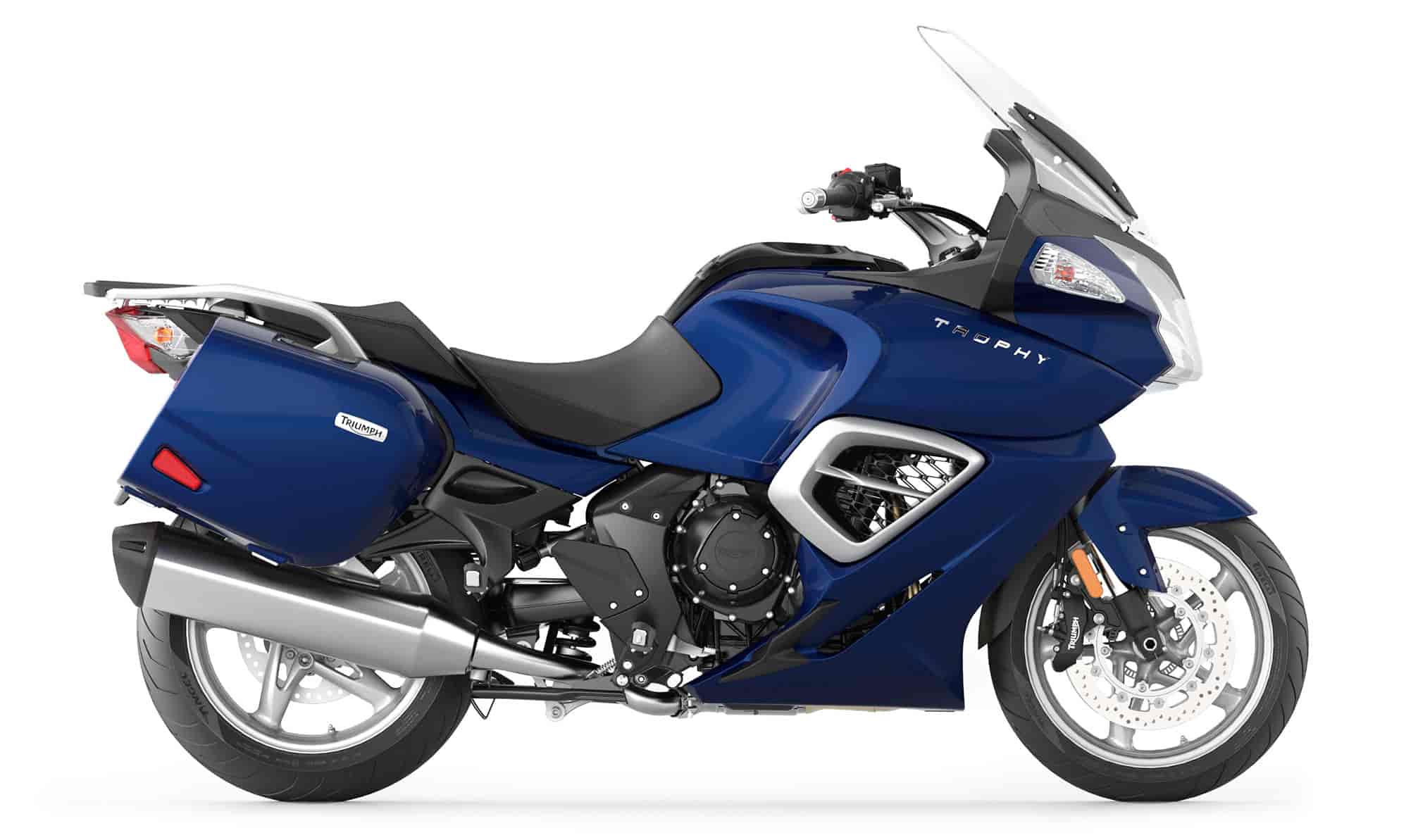 Two models are available: the Trophy and the Trophy SE. Either model can be selected in Pacific Blue or Lunar Silver paint schemes. Both models feature headlight positional adjustment, center stand, rider seat height adjustment, lockable cockpit storage box with 12v power socket, a 6.6 gallon fuel tank and Triumph’s unique Dynamic Luggage System (TDLS), all as standard.