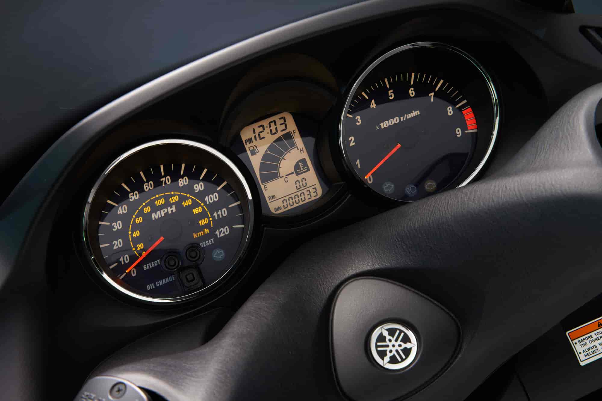 •Instrumentation includes analog tachometer and speedometer with digital odometer, dual tripmeters, fuel tripmeter, fuel gauge, outside air temperature and coolant temperature. The instrumentation also includes a V-belt wear indicator light and an oil change indicator light.