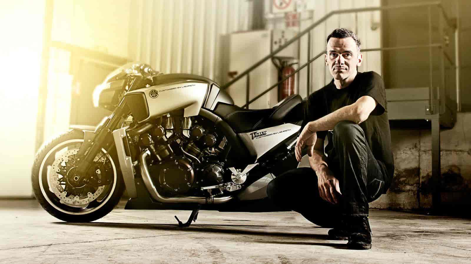 Ludovic combines his background as a design graduate and passion for muscle machines. It’s a mix of brain and brawn that results in mad modifications that could come straight out of movie – Mad VMAX. He’s famous for his silhouette style and for his first iconic VMAX customization: taking a wrecked 1991 model, fitting special parts and an LCD screen with a rear-view video link to create a unique hyper-modified VMAX