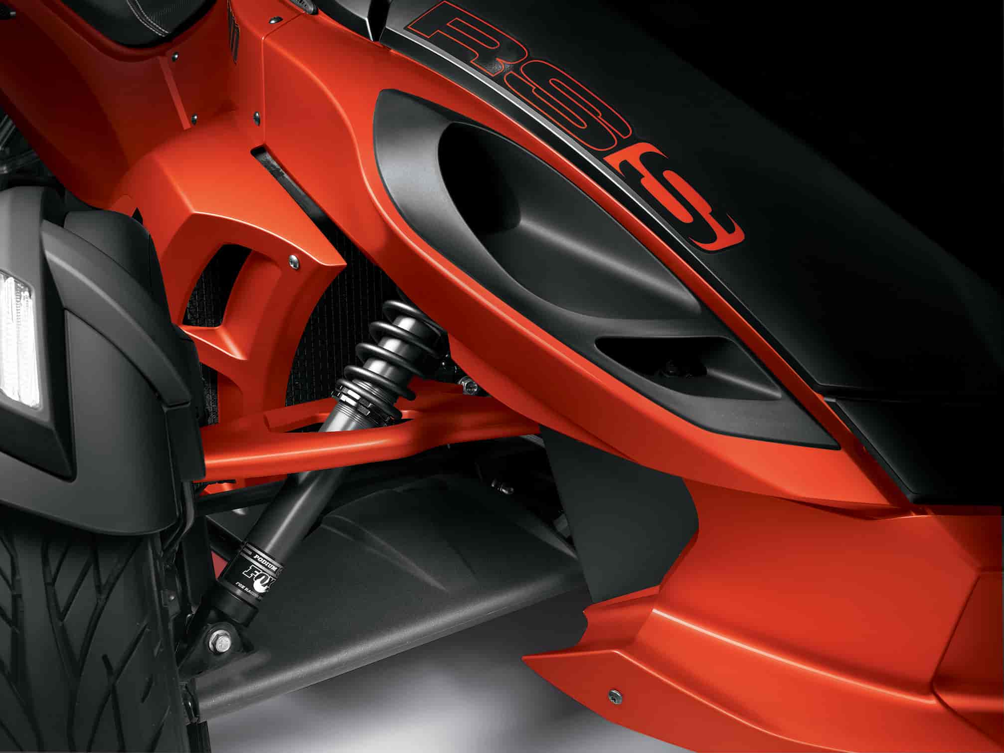 Take performance to the next level with the Spyder RS-S. The custom trim package and striking 15-inch wheels give it a high-performance attitude. Attitude that’s easily backed up by FOX† shocks. Plus, the Spyder RS-S comes with all the features and amenities of the Spyder RS.