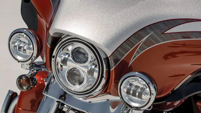 Lights (as per country regulation), Indicator Lamps 7High beam, running lights, front fender running lights, directional lights, neutral, low oil pressure, engine diagnostics, accessory, speakers, turn signals, security system (optional),gear indication, battery, low fuel warning, cruise control (optional), ABS (optional), miles to empty display, fog/aux lamp indicator