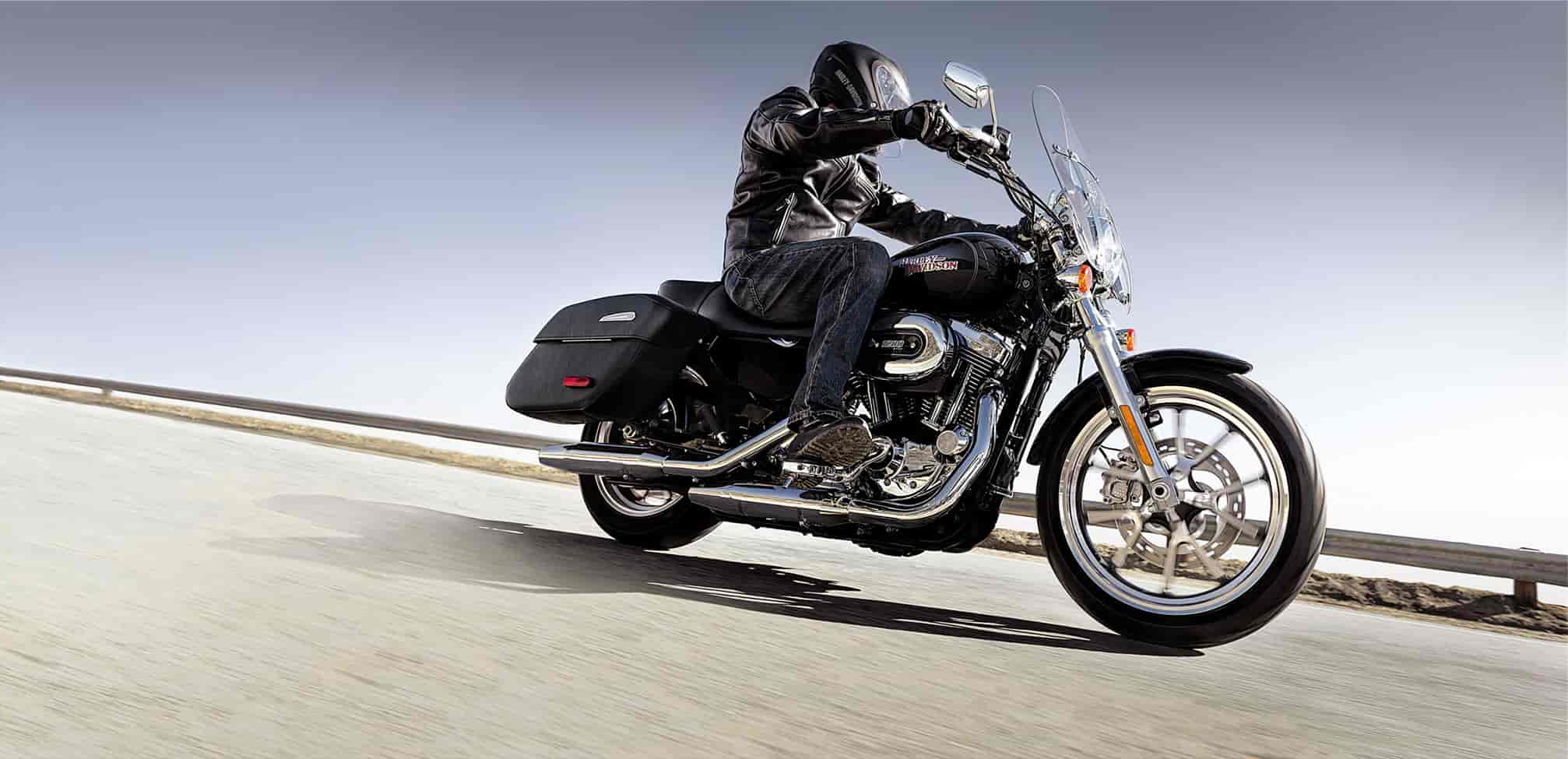 SuperLow 1200T Harley-Davidson opens the door to touring adventure with the SuperLow 1200T, a motorcycle that combines a nimble chassis with essential touring features and the power to ride to the horizon. A detachable windshield, locking saddlebags and Michelin® Scorcher™ 11T touring tires are standard equipment. Docking points accommodate detachable accessory racks and backrests for ease of customization.