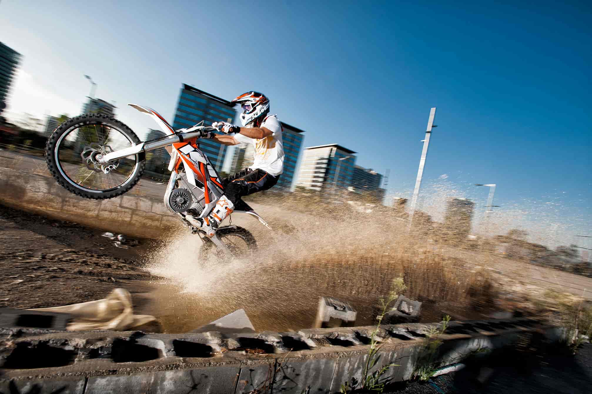 It’s time for a new offroad motorcycle segment! It’s time for more motorcycle freedom! It’s time for the Freeride E! With the revolutionary Freeride E, KTM takes lightweight, noise-free and agile offroad motorcycles where enduro riding was previously impossible: into the city! With 42 Nm of torque, up to 22 kW (30 hp) peak power and uninterrupted acceleration, it’s just as sporty as other KTM bikes. Only it needs recharging rather than refuelling.