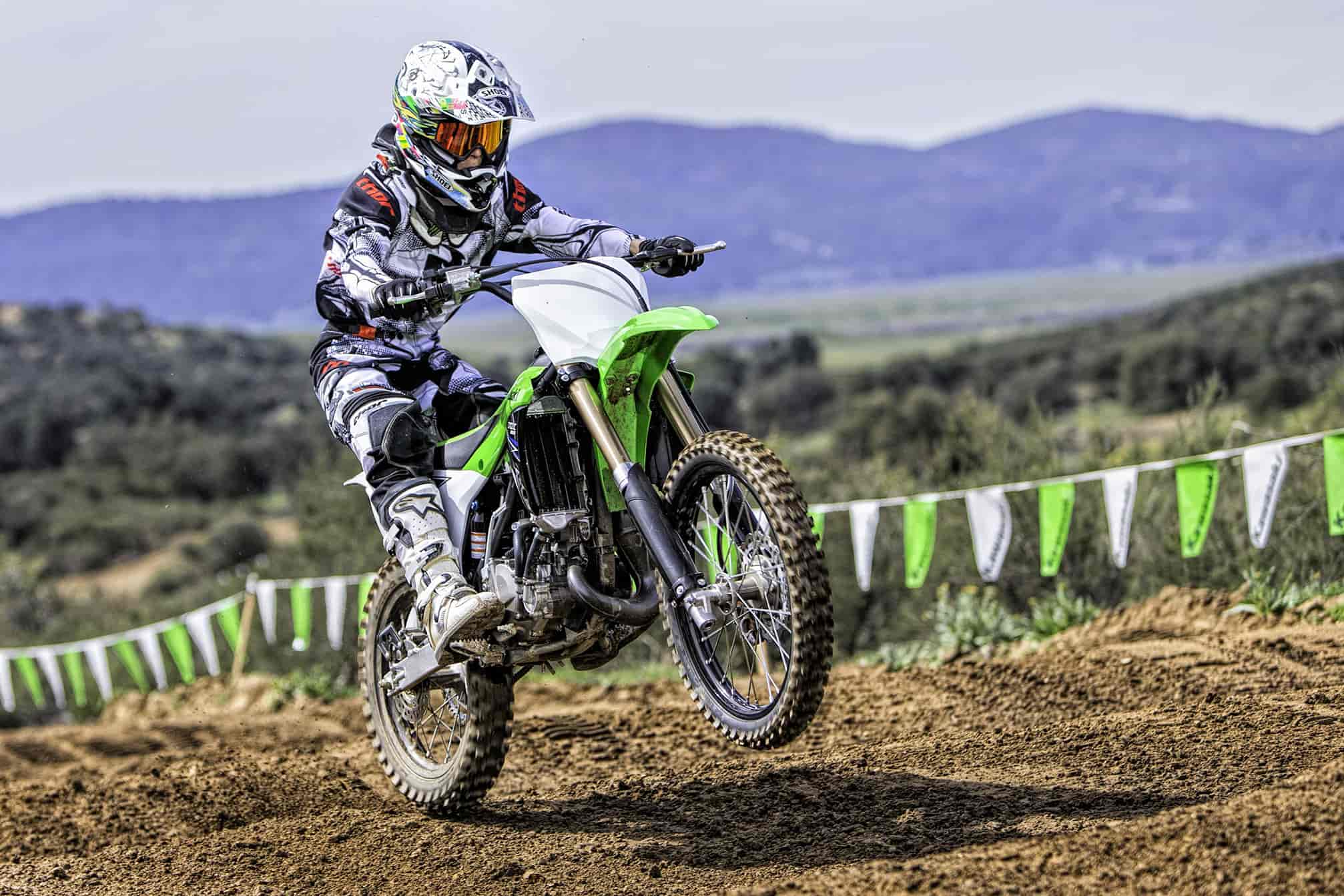 – NEW front brake hose routing helps protect brake line; front guides are just like the big KXs