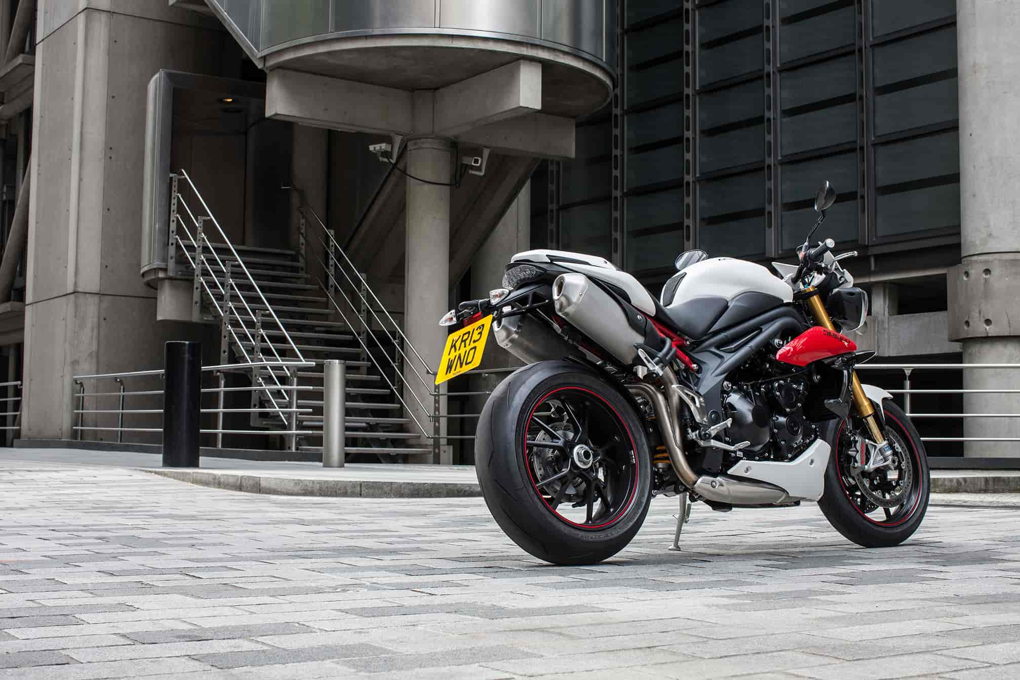 We fitted lightweight cast aluminium wheels and a wide 6 inch rim on the back to take the grippiest, sports-focused rubber the Speed Triple R deserves