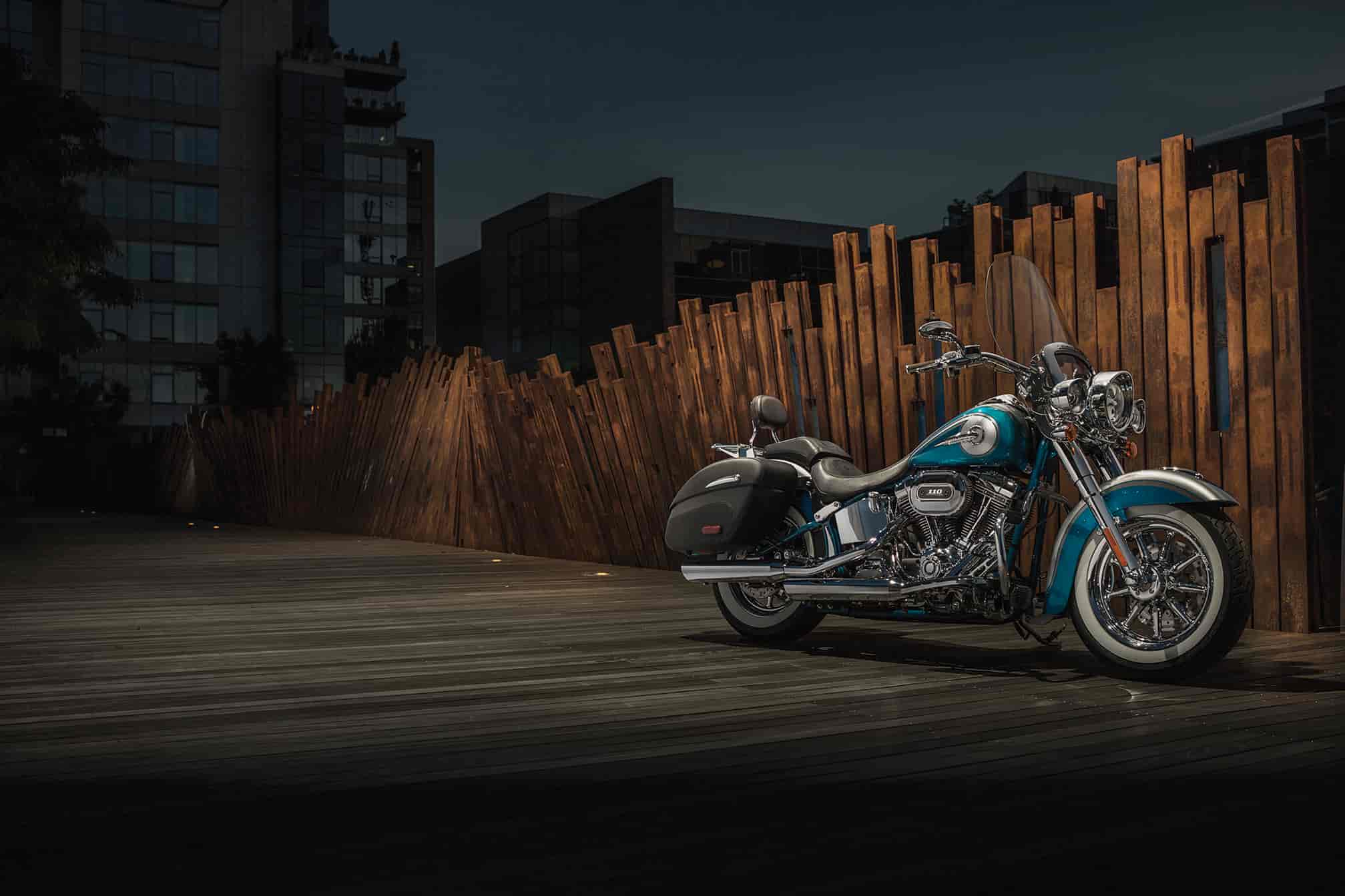 Dressed out in its windshield, lockable saddlebags, luggage rack, sissy bar, and passenger pad, CVO™ Softail® Deluxe model gives you all the capability to go coast to coast on a two up ride. The real beauty is, once you get to the coast all that stuff comes off in an instant and you’re ready for a night on the town.