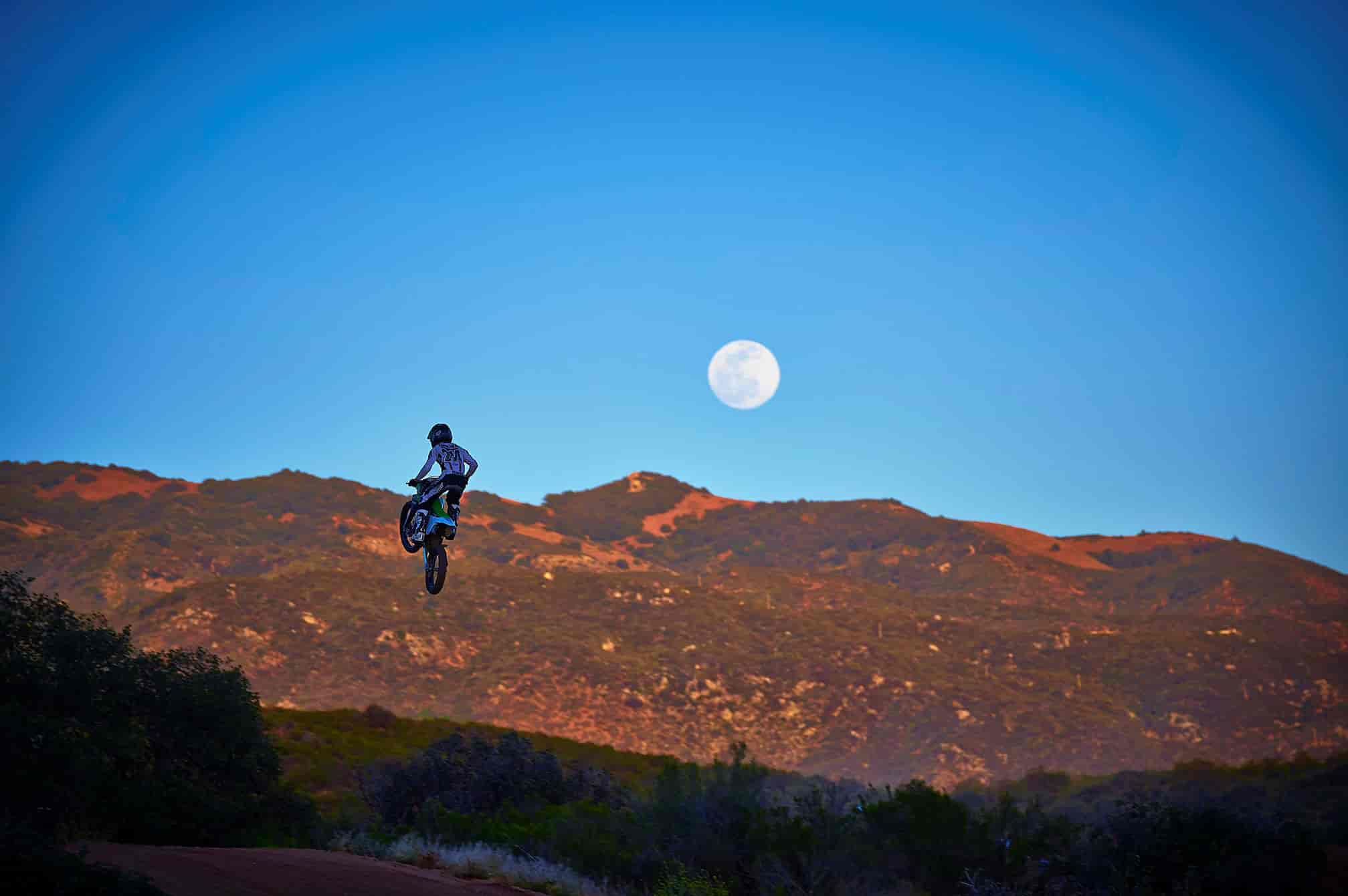 Completing its factory race styling, the KX100 is finished in Kawasaki’s signature Lime Green with eye-catching detail appointments such as green alumite coatings on the adjusters and black alumite coating on the rims, just like Villopoto’s factory KX450F.