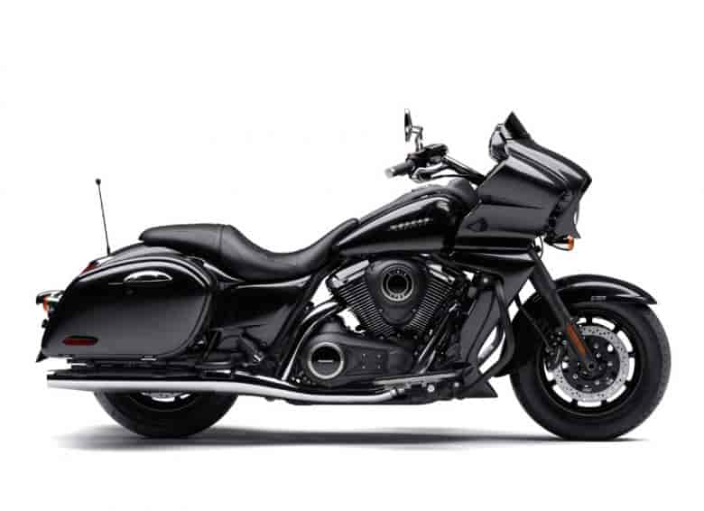 Kawasaki’s first bagger model follows a wide-and-low concept, its design flowing from the front to the rear of the bike. Along with its hard, sporty image, the Vulcan 1700 Vaquero is loaded with high-grade cruising essentials like Kawasaki’s advanced brake system K-ACT ABS, Electronic Cruise Control, and a high-spec iPod-compatible audio system.
