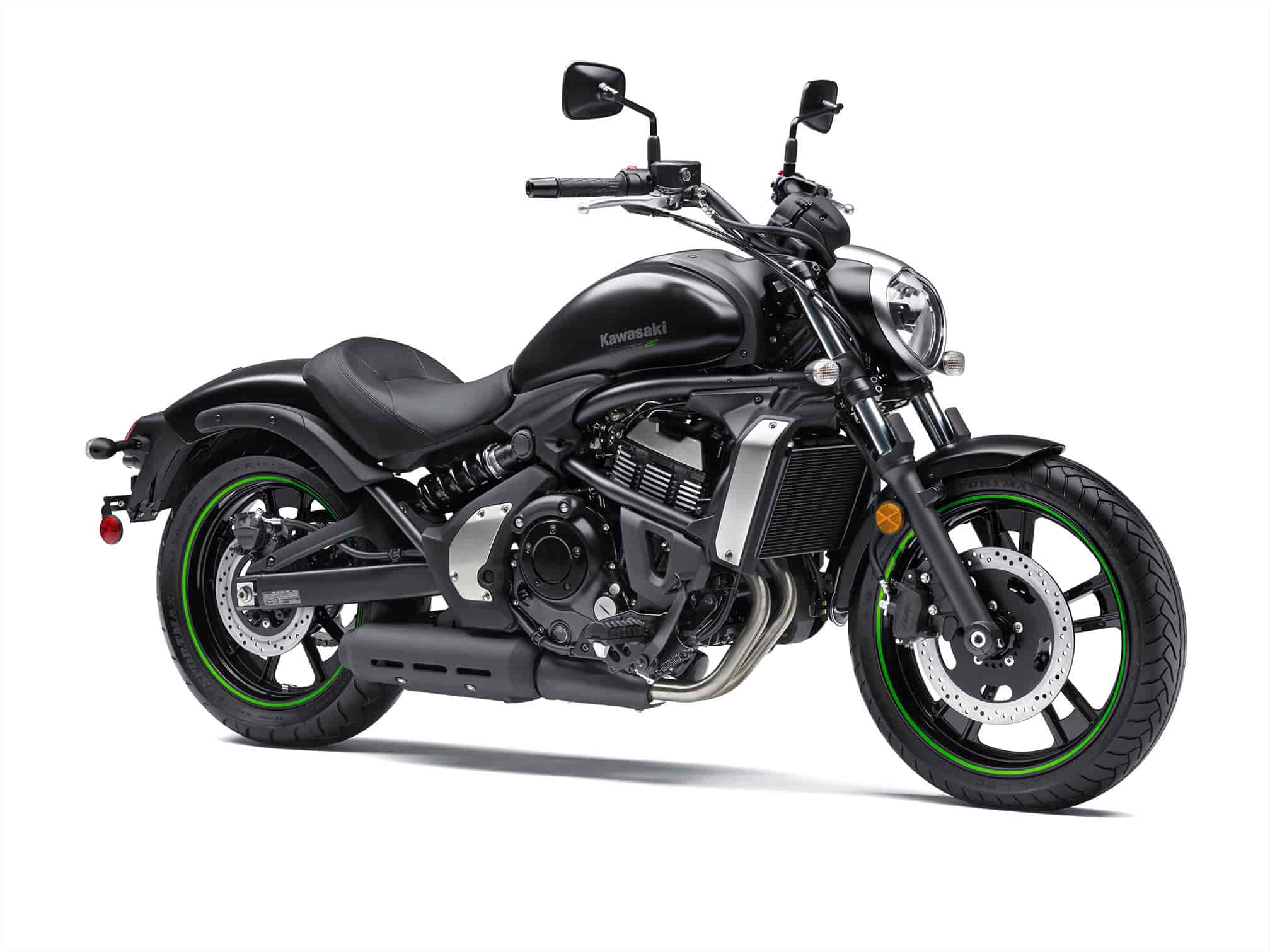The 2015 Vulcan S will be available in three distinctive colors, including Candy Lime Green as well as Pearl Crystal White and Flat Ebony.