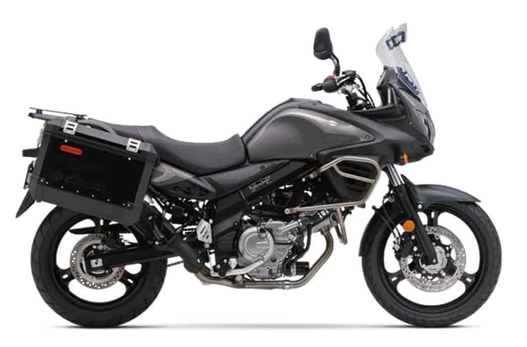 For 2014, The V-Strom 650 ABS Adventure is another choice in adventure touring. It has striking accessories that include sleek aluminum side cases large enough to fit a full-coverage helmet, a rugged accessory engine bar and an adjustable windscreen. It also has the same improved performance as the original V-Strom 650 ABS. Its 645cc V-Twin engine has improved low-to-mid rpm performance, matched by enhanced fuel economy and environmental performance.