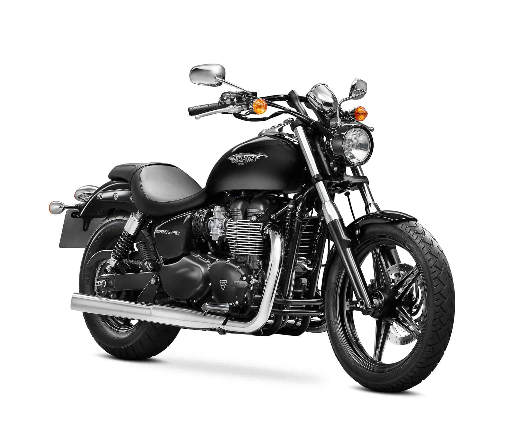 Long, low, blacked out and mean, the Speedmaster echoes the hot-rod cruiser theme but adds a very British spin with some classic Triumph parallel twin power.