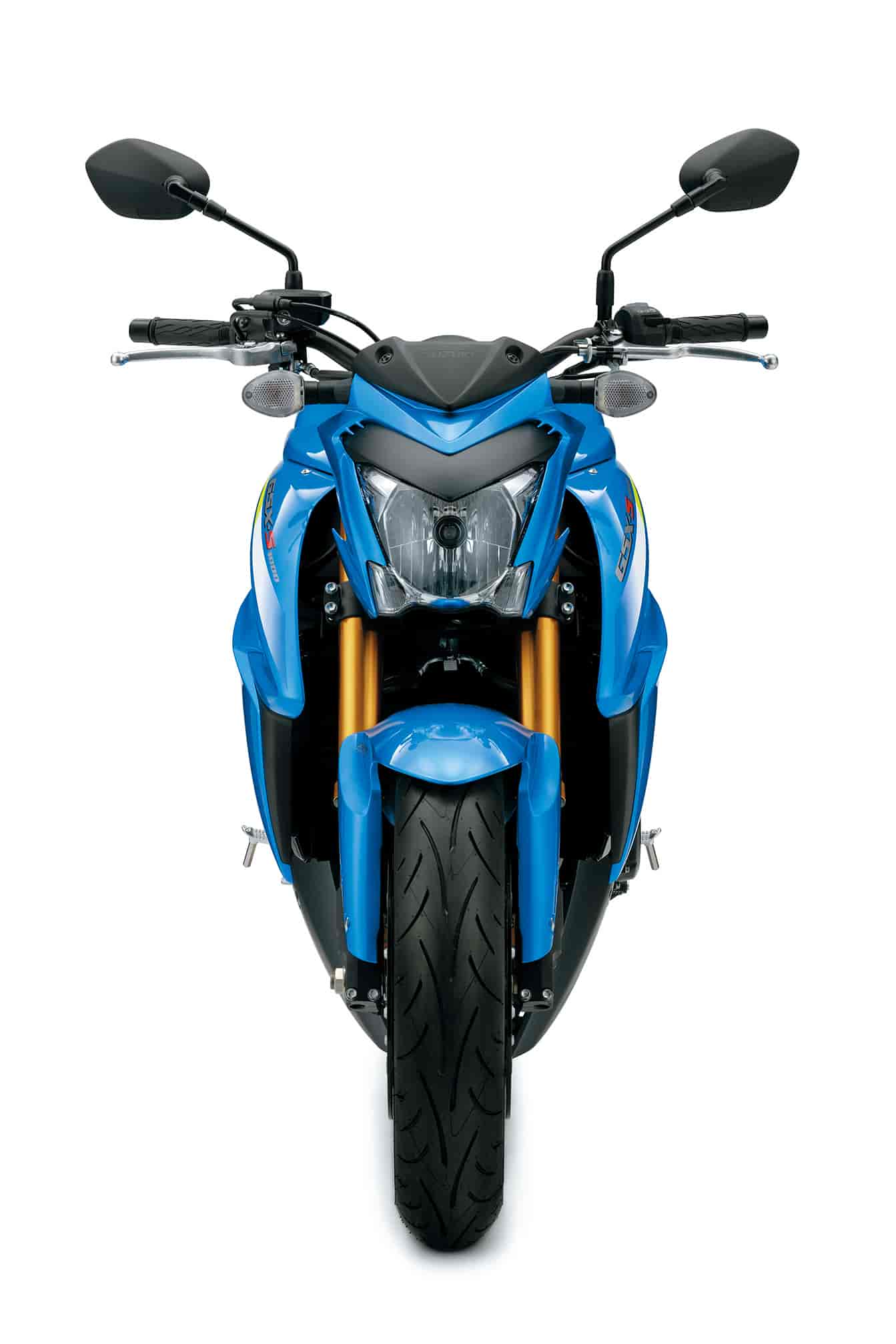 The naked-style single headlight GSX-S1000 is equipped with angular radiator shrouds that enhance the aggressive image and aid cooling performance.