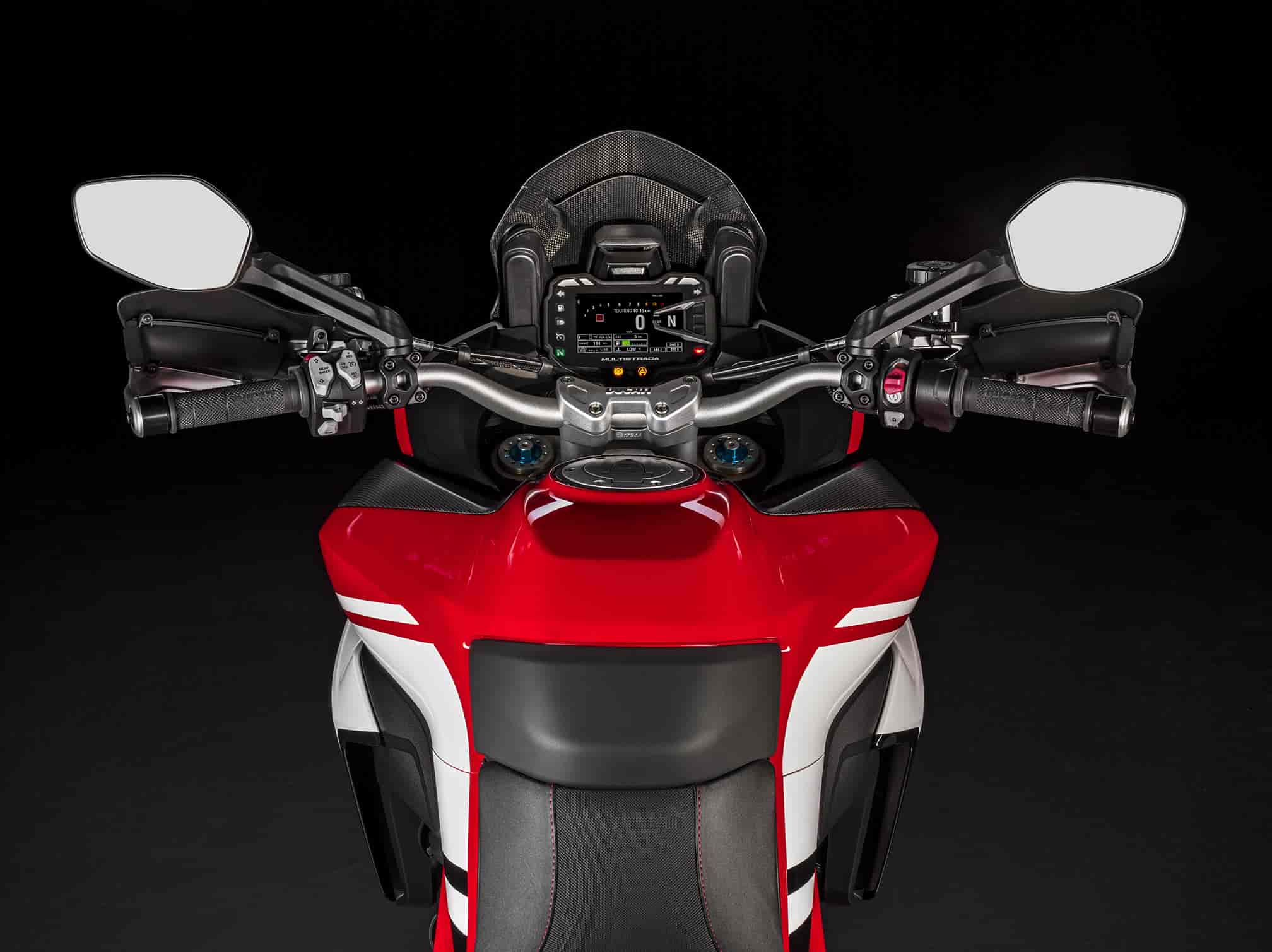 Ducati electronics Riding Modes, Power Modes, RbW, Ducati Safety Pack (cornering ABS + DTC), Ducati Skyhook Suspension Evo (DSS), Ducati Wheelie Control (DWC), Cruise Control, Full LED headlamp with Ducati Cornering Lights, Hands-Free, Backlit handlebar switches, Ducati Multimedia System (DMS), Full-colour TFT display, Anti-theft ready, Heated grips ready, Supplementary lights ready