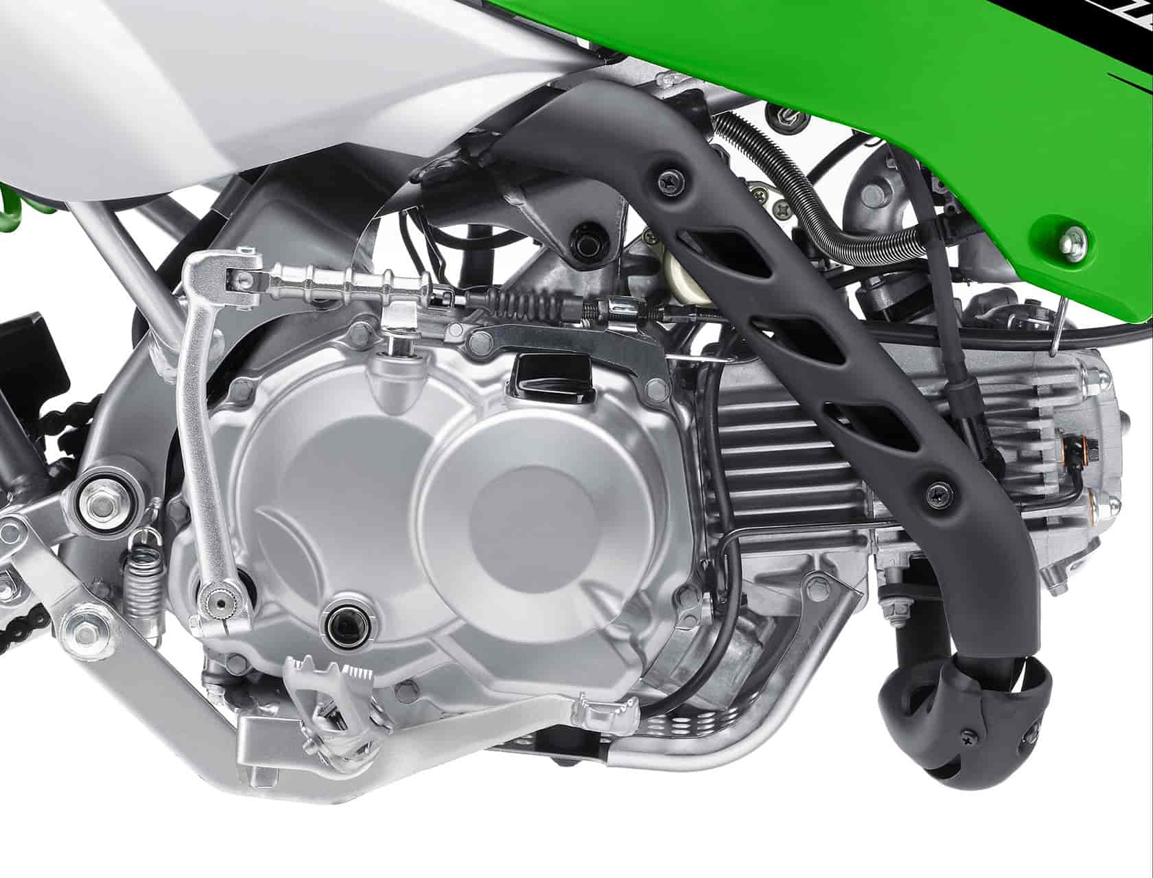 The KLX110 is equipped with a 4-speed transmission and a resilient centrifugal clutch so entry-level riders can learn to shift without the distraction of operating a clutch lever. The larger KLX110L has a manual clutch to add performance while the rider develops their skills.
