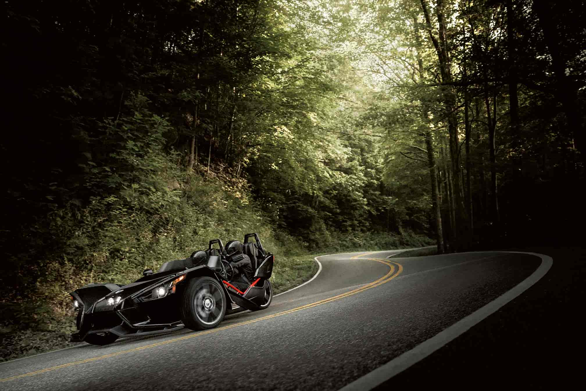 Slingshot SL LE is a three-wheeled motorcycle, not an automobile. It doesn’t have airbags, meet automotive safety standards, and it may handle differently than other vehicles, especially in wet conditions. Always wear helmets, seat belts, and don’t drink and drive.