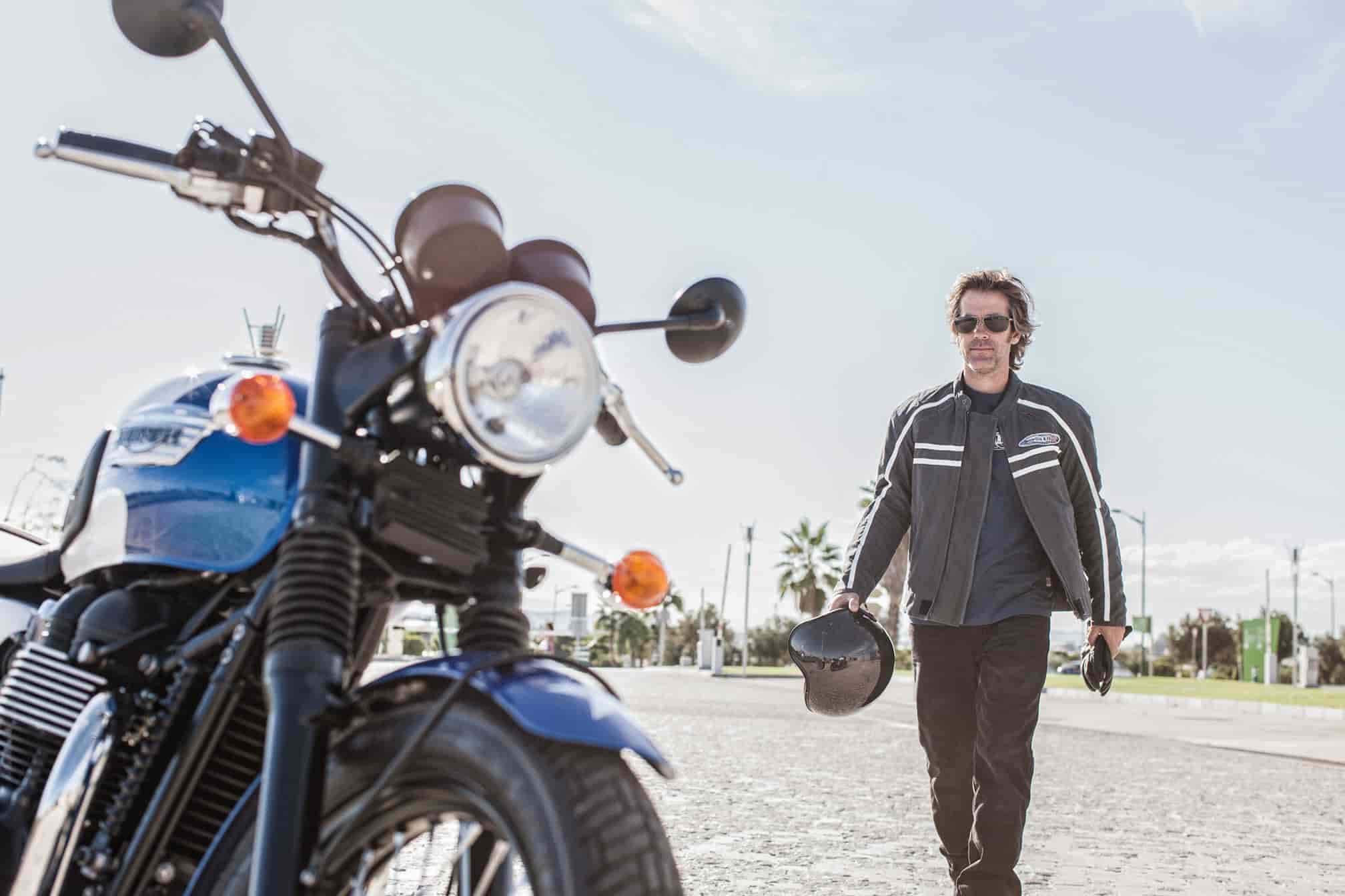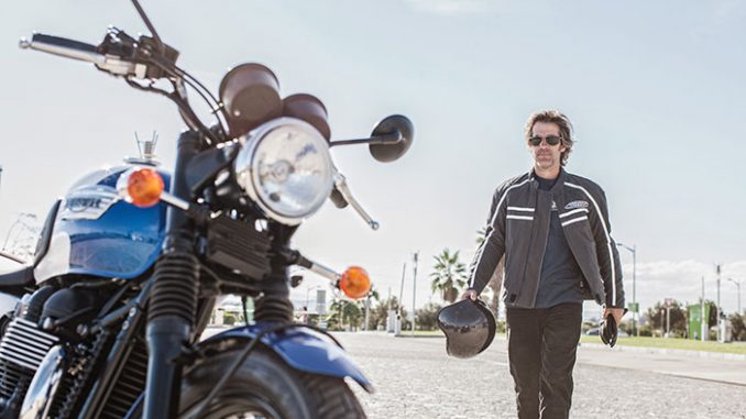 New for Autumn Winter 14 is a range of land speed record clothing and merchandise that echo the spirit of the T214 and Cee-gar. The Speed Record jacket takes all of its styling from that ground breaking machine from the colour to the subtle sign off of the chequered design with the white contrast piping. This heritage styled riding jacket is still full of riding technology like CE certified Knox® protection, TriTex waterproof and windproof Z liner with an additional quilted liner that can be removed too help create the perfect micro climate. Other casual items in the range include t-shirts, polo shirts, zip thrus, and caps.