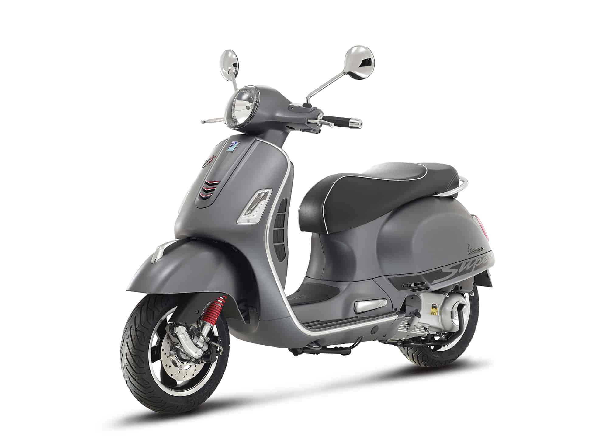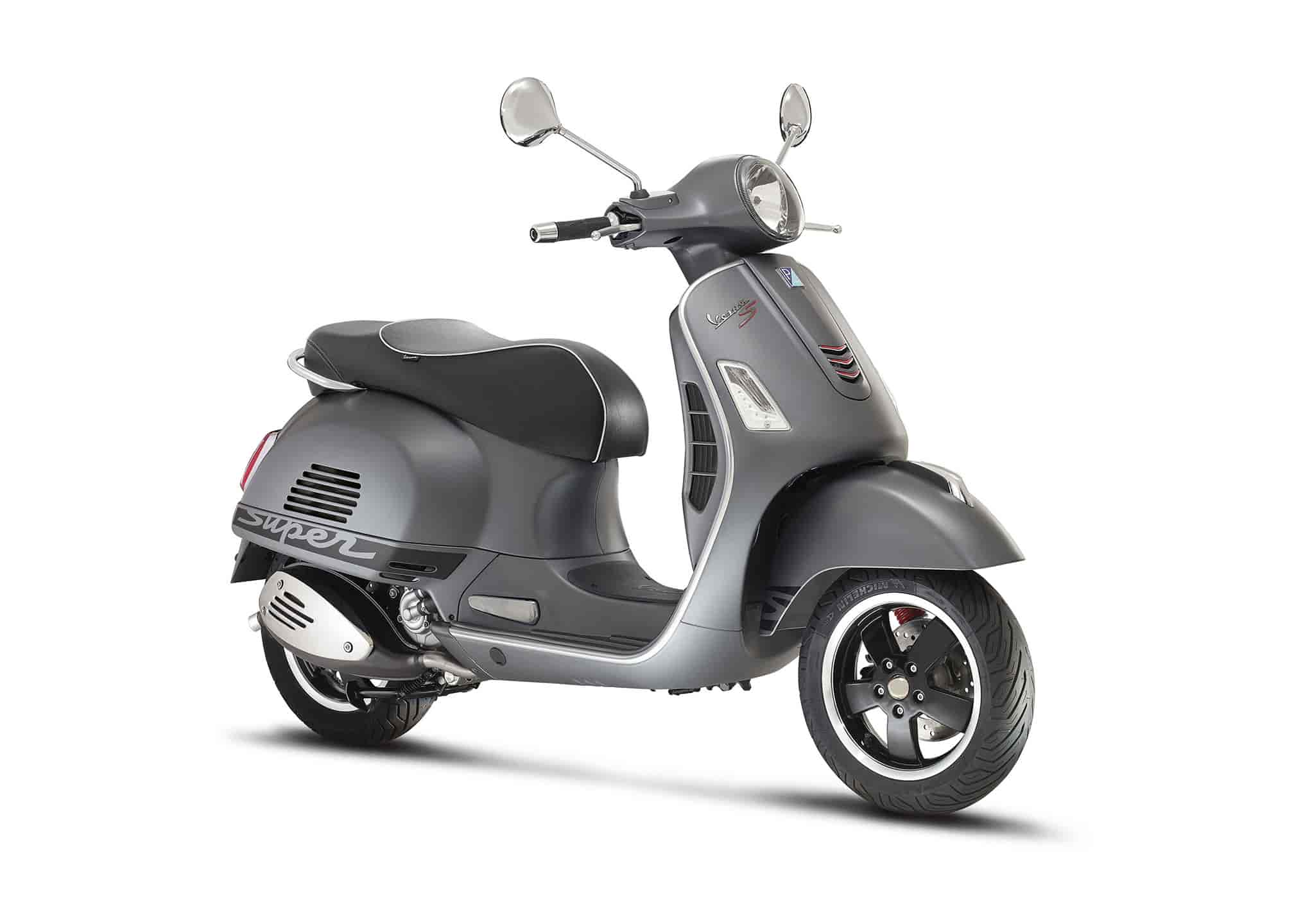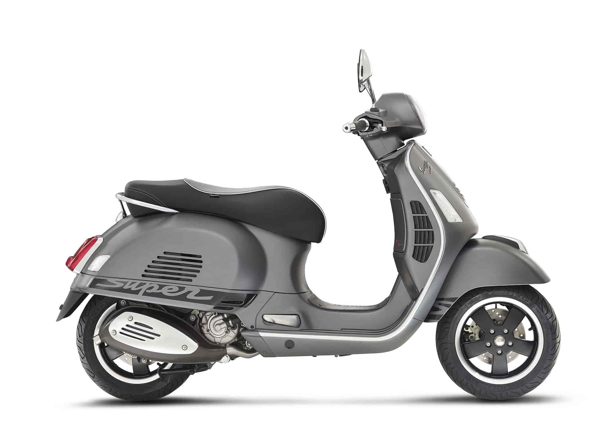 The 2016 Vespa GTS SuperSport is the most aggressive Vespa of the large scooter family that is the most popular in the world, that blend together drive, attitude and performance. The sport spirit stands out through its Titanium Grey paint work and eye-catching aesthetic features such as the black seat, red suspension coil springs, all new moulding and new dedicated black graphics.