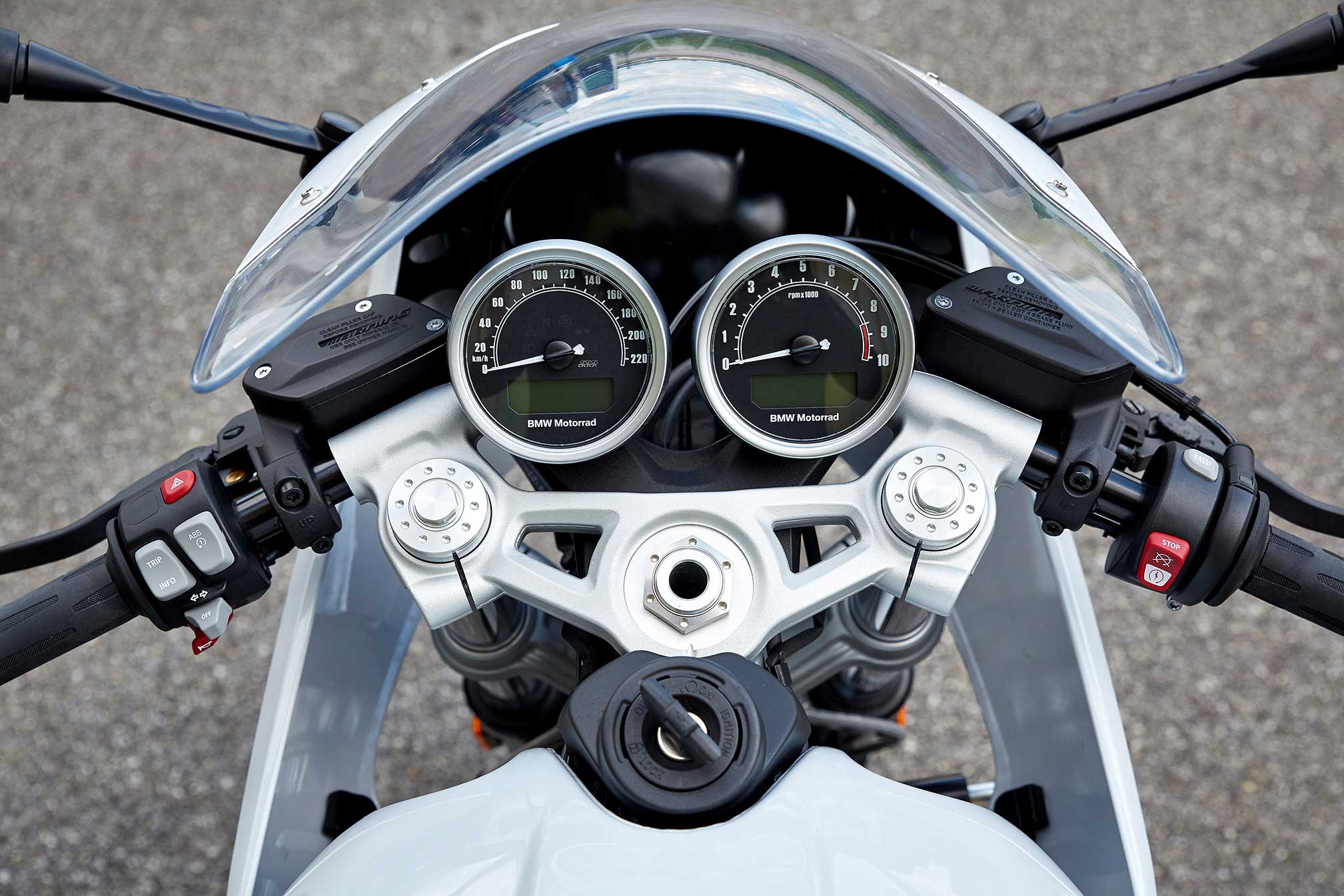 The typical café racers of the 1970s always featured analog circular instruments, and this detail is faithfully reproduced in the R nineT Racer. In their simplicity, both circular instruments follow the classic principles while still making use of modern technology. For example the R nineT Racer has an on-board computer as standard which provides a large and clear display on a segmented screen of the most important information such as time, active gear, remaining range, trip distance, service interval and average speed and
