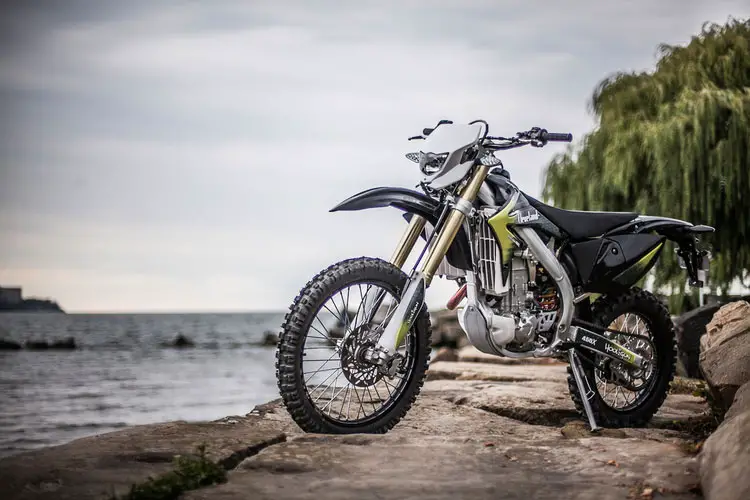 OHC, 4 Valve, Liquid Cooled 450cc, full aluminum twin spar style frame, aluminum linked rear suspension, on-road and off-road versions available. A true Hooligun on the roads, keep that front tire down sir!