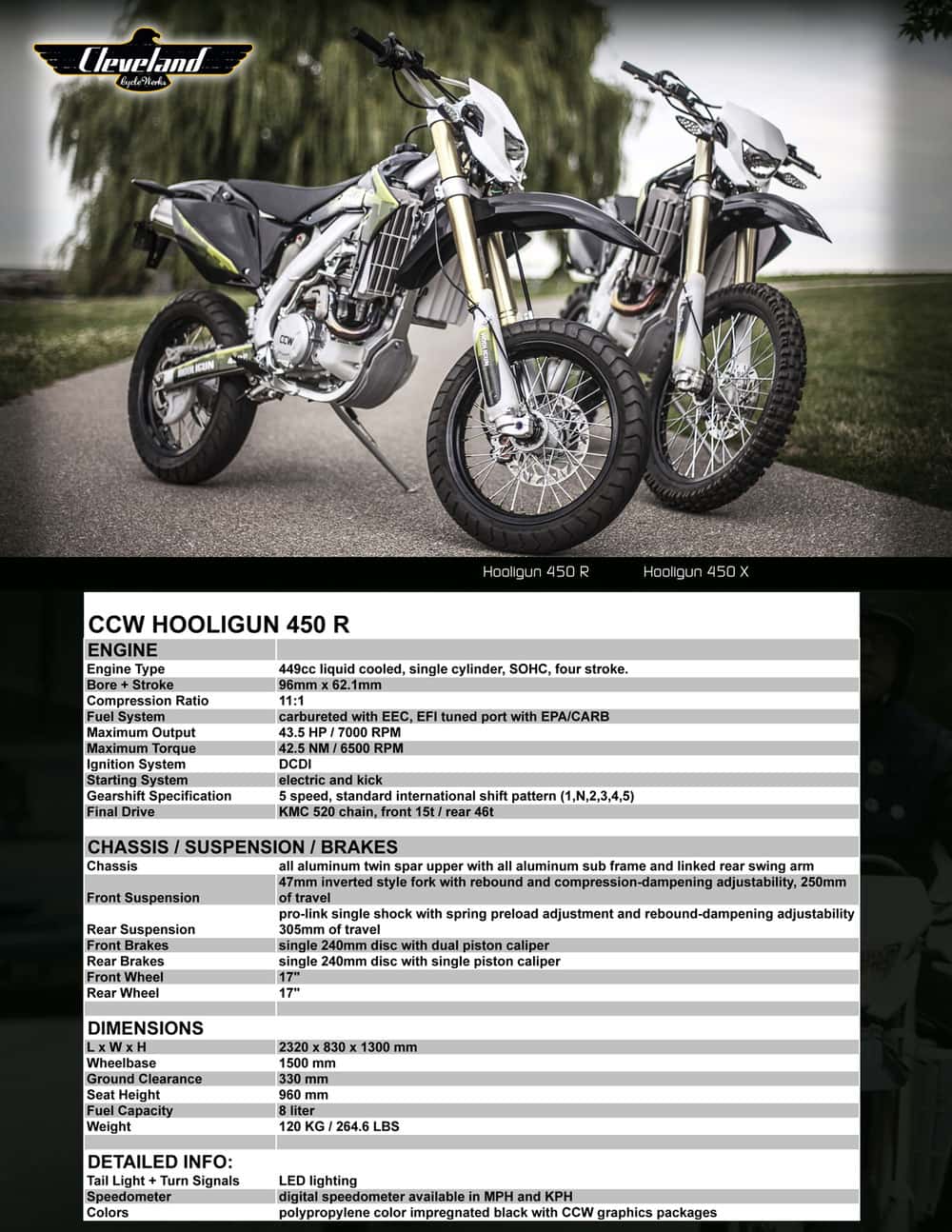 2017 Cleveland CycleWerks Hooligan X 450 Specifications – CLICK TO ENLARGE