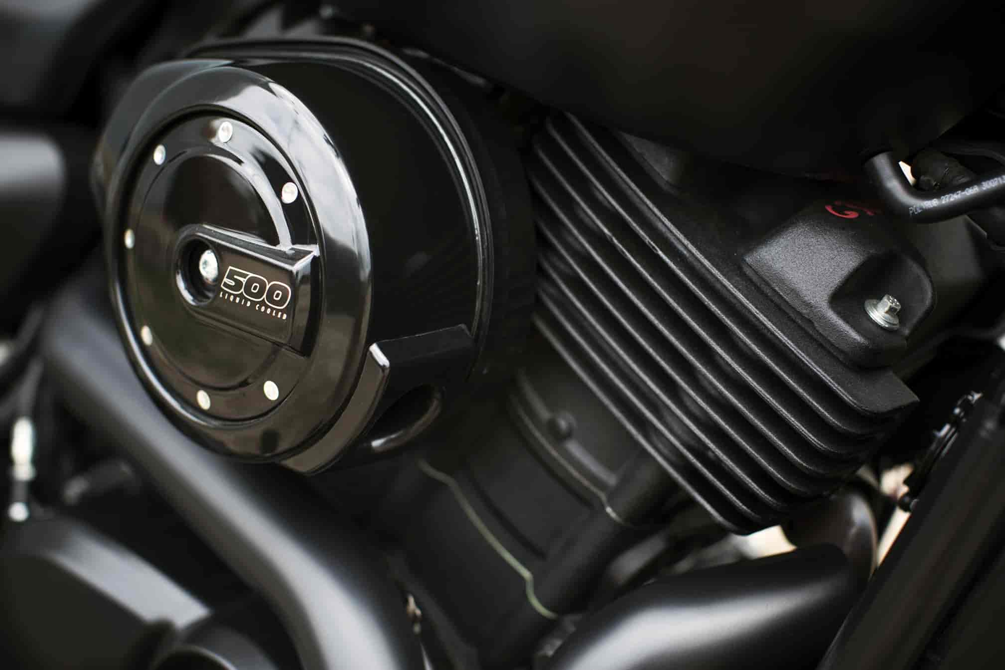 The liquid-cooled Revolution X™ engine that powers the Harley-Davidson Street® 500 motorcycle is 494 cubic centimeters of genuine Harley-Davidson® V-Twin built to thrive in high temperatures and heavy traffic. Liquid-cooling means it maintains temperature and performance. Bring on the stop- and- go traffic. The Street 500 stays cool and ready to respond instantly to your throttle hand. And you can count on this: every cubic centimeter of the 494cc Revolution X™ engine is pure Harley-Davidson. 60 degree cylinders. 4 valves per head. And plenty of low-end torque. You don’t have to be winding the RPMs up to five figures to feel the strength and character of this engine. It’s built to give you a soul-satisfying ride at the kind of RPMs you find yourself riding at on city streets.