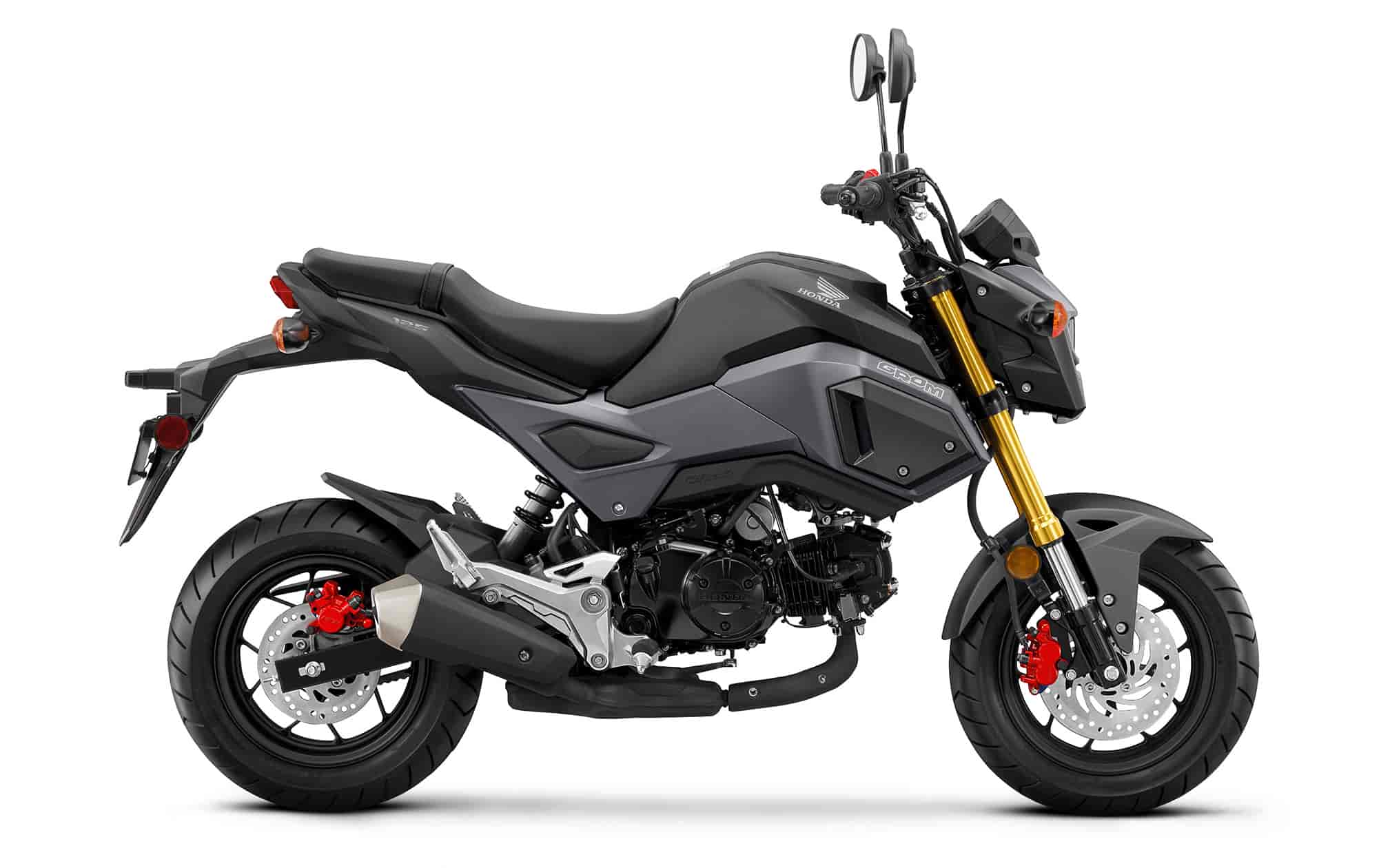 Part minibike, all motorcycle, the Grom has been a resounding success from the start, with a package that’s manageable yet comfortable for full-sized adults. Though its wheels are only 12 inches, the bike has full-size features like a sturdy steel frame, a 31mm inverted fork, mono-shock rear suspension, hydraulic disc brakes and a 125cc single-cylinder four-stroke engine. Now the Grom gets an edgier look, thanks to an integrated fuel tank and side panels, along with a modern, stacked LED headlight layout. Add a new flip-key, sportier handlebar, under-slung exhaust, upswept tail unit and a higher passenger seat, and you’ve got a Grom that’s as fun as ever but with a daring new look.