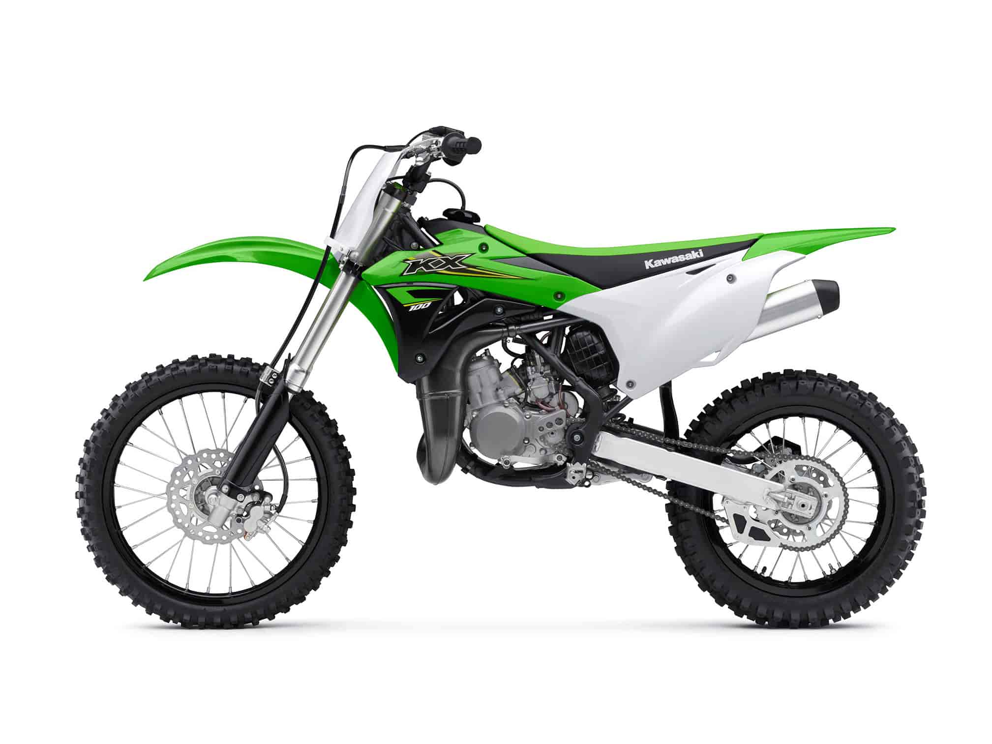 THE KX™100 MOTORCYCLE IS THE CHOICE OF FUTURE MOTOCROSS CHAMPIONS. WITH MORE POWER AND LARGER WHEELS THAN THE KX™85, THIS TWO-STROKE SUPER-MINI GIVES RIDERS THE PERFECT BLEND OF PROPORTIONATE POWER INCREASE WITH A LARGER CHASSIS BEFORE TRANSITIONING TO THE BIG BIKES.