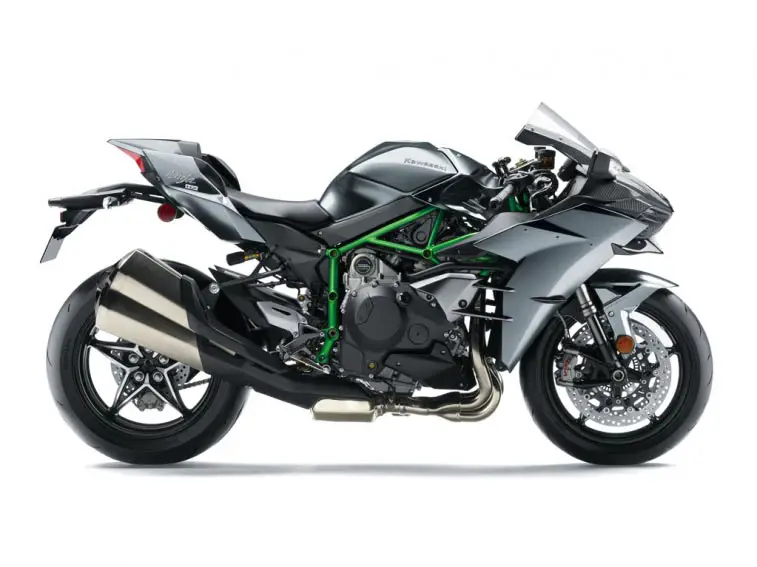 The Ninja H2 motorcycle uses similar bodywork, although it is not made from carbon fiber. Mindful of its street use, it is equipped with a front headlight, mirrors and turn signals. It is also finished in a revised silver-mirror paint giving a high-quality metallic-style appearance.