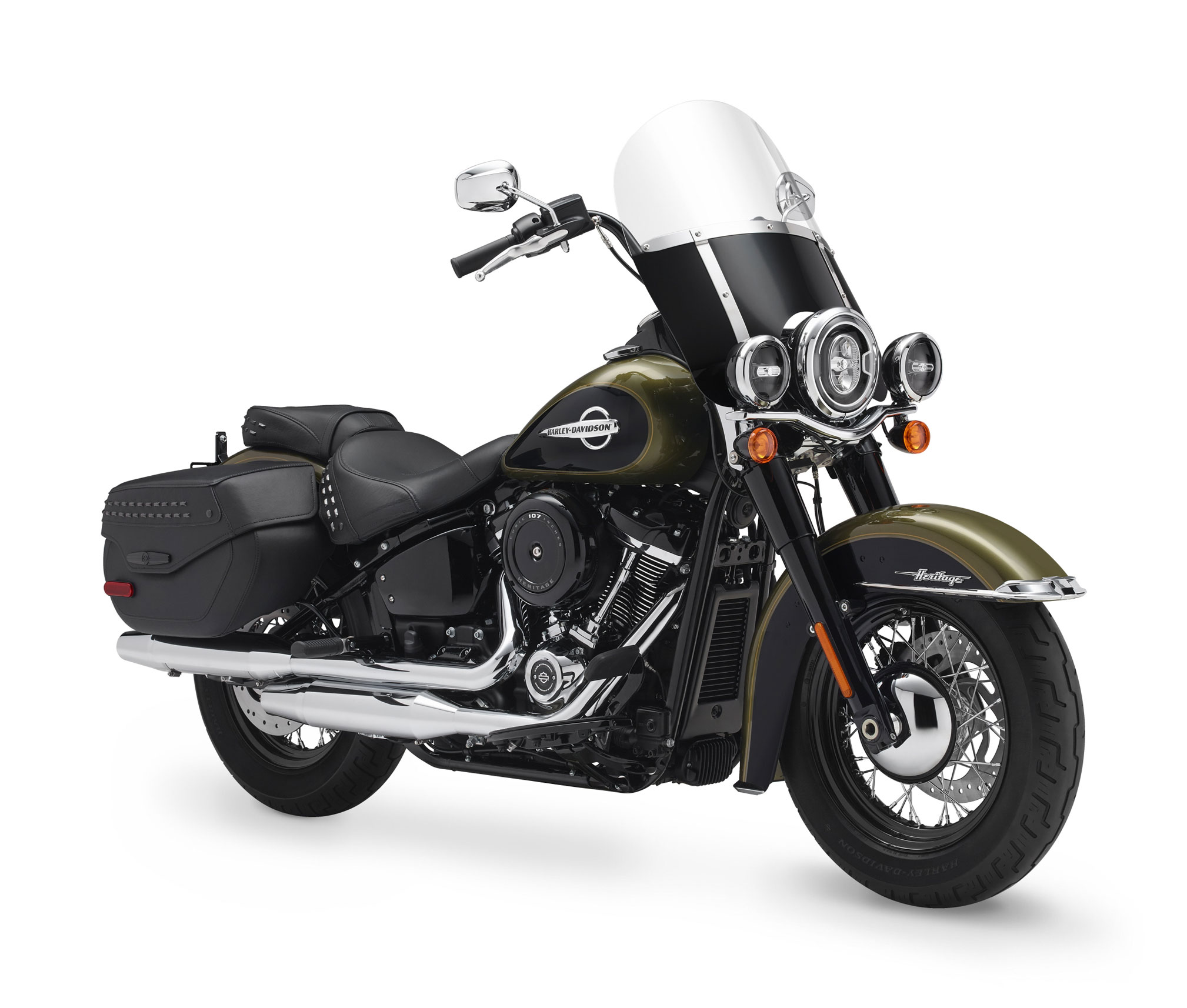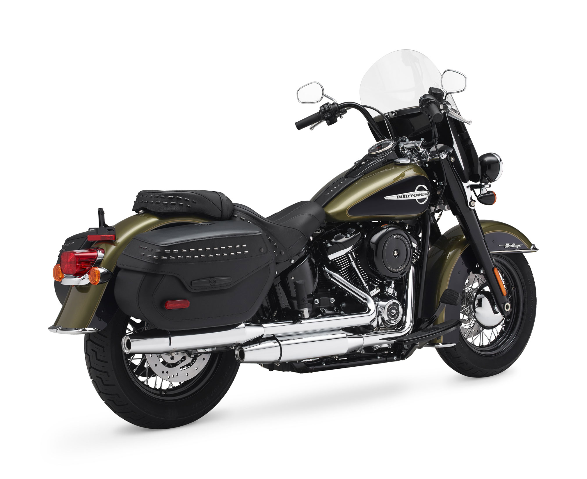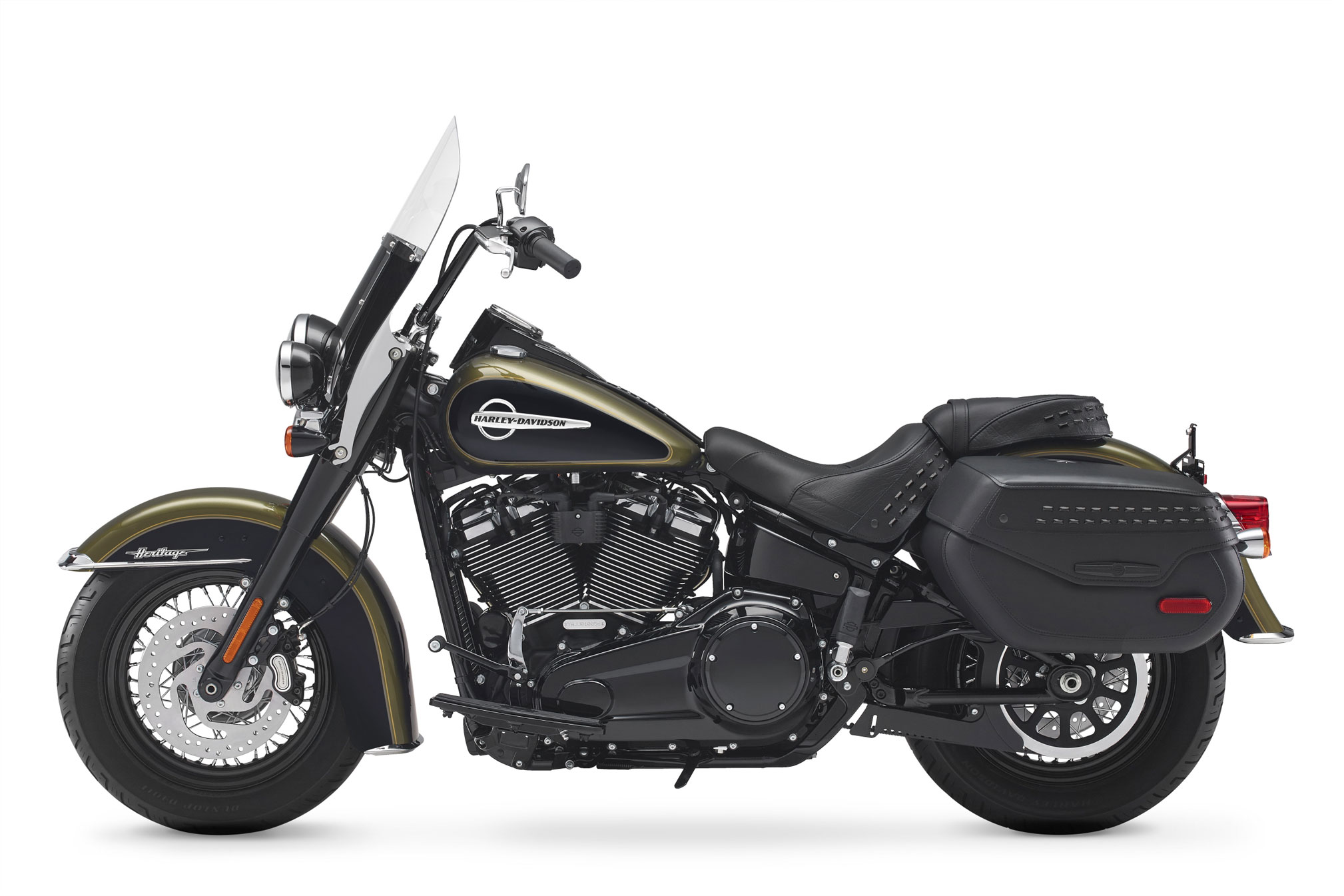 The new Heritage Classic adds a fresh edge to chromed ‘50s nostalgia. The history is still there, but it’s done with a dark style, modern edge and totally reinvigorated ride. At the heart of it all is a blacked-out Milwaukee-Eight® V-Twin engine. It has reduced weight, awesome acceleration and smooth ride of an all-new Softail® motorcycle, and features a windshield and hard saddlebags for light touring. Available in 107 and 114 (see Heritage Classic 114) engine displacements.