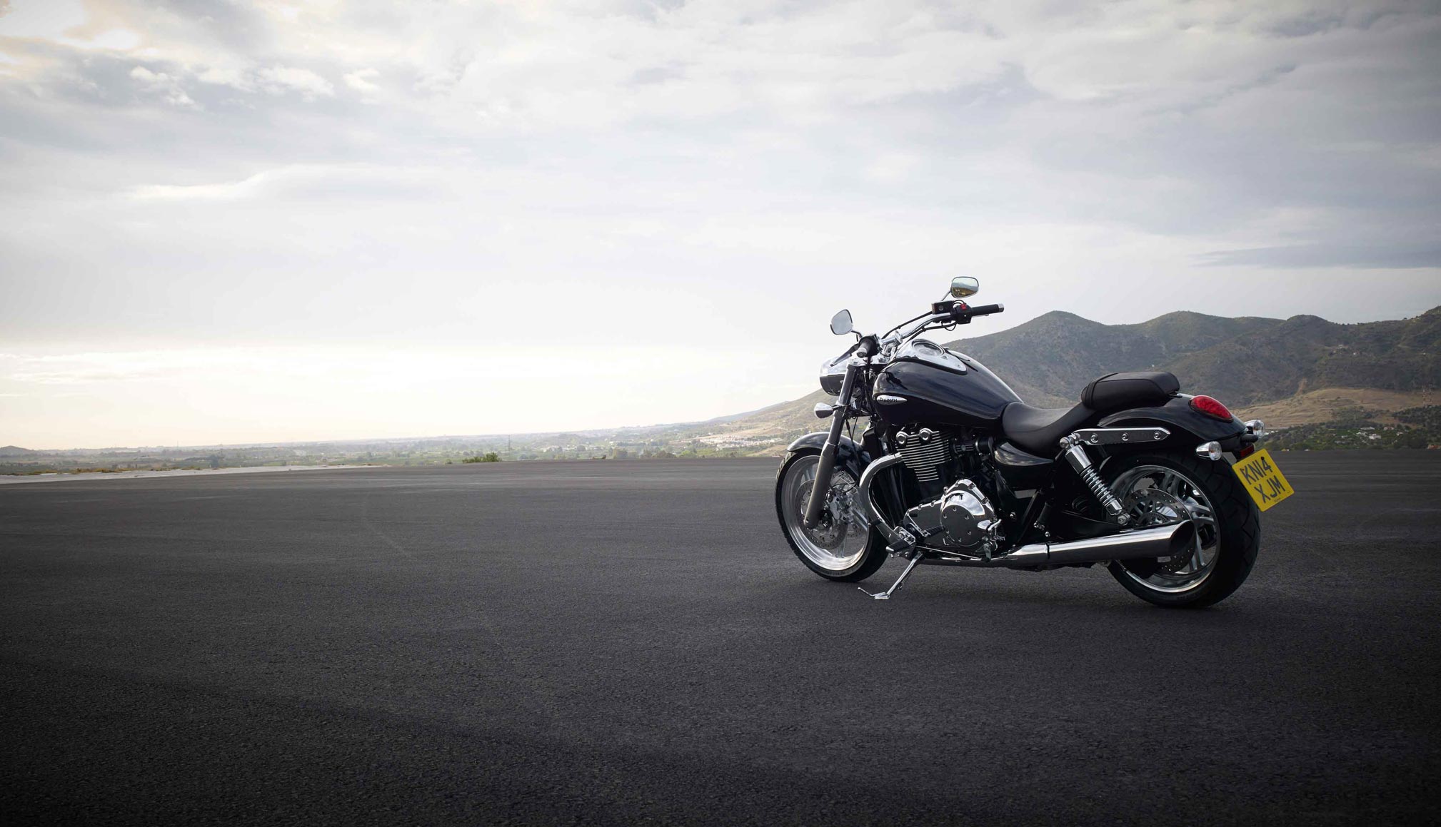 The engine itself is unique in its class, a classic Triumph parallel twin. And the styling is pure cruiser with sweeping lines, low seat and high bars.