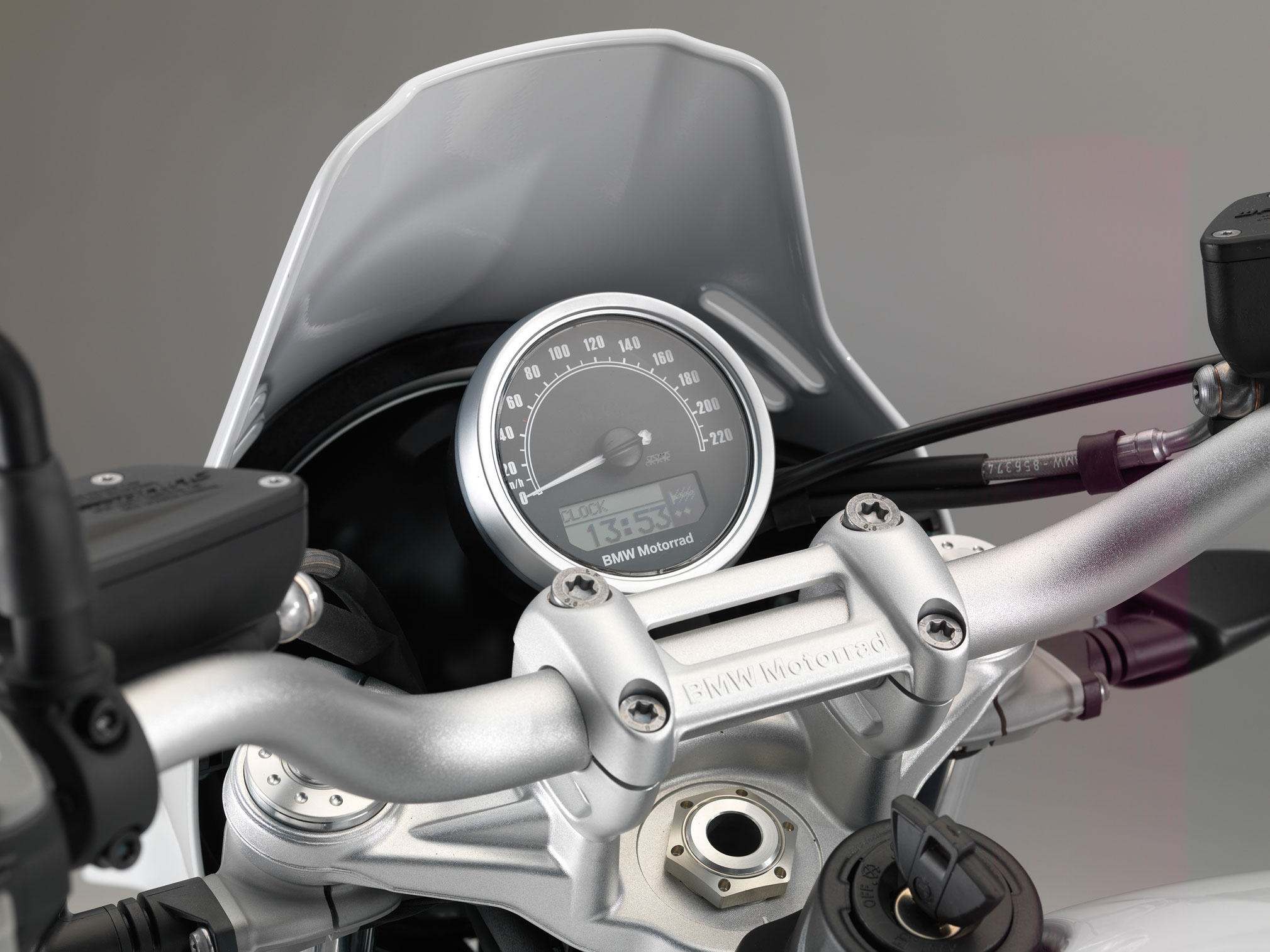 The R nineT Urban G/S also excels on everything from unpaved paths to gravel roads. The optional knubby tires and spoked wheels, the Enduro foot pegs, the bolted-on heat shield and the steel footbrake lever emphasise the effect, both functionally and visually.