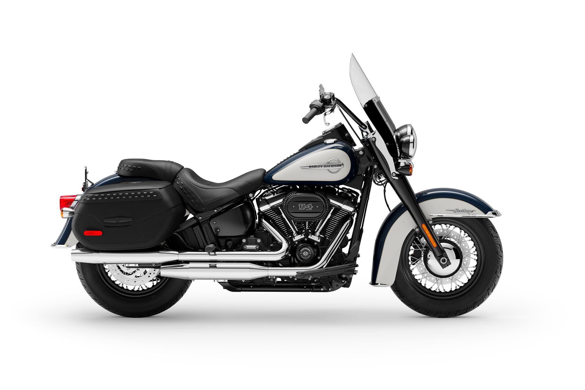 The refined gloss-black finishes, modern edge and reinvigorated ride of the Heritage Classic takes nostalgia ripping into a new place. It starts with the performance of the Milwaukee-Eight® 114 engine and the re-invented Softail® frame and suspension. On top of that, it holds a look that drips with gangster-era style.