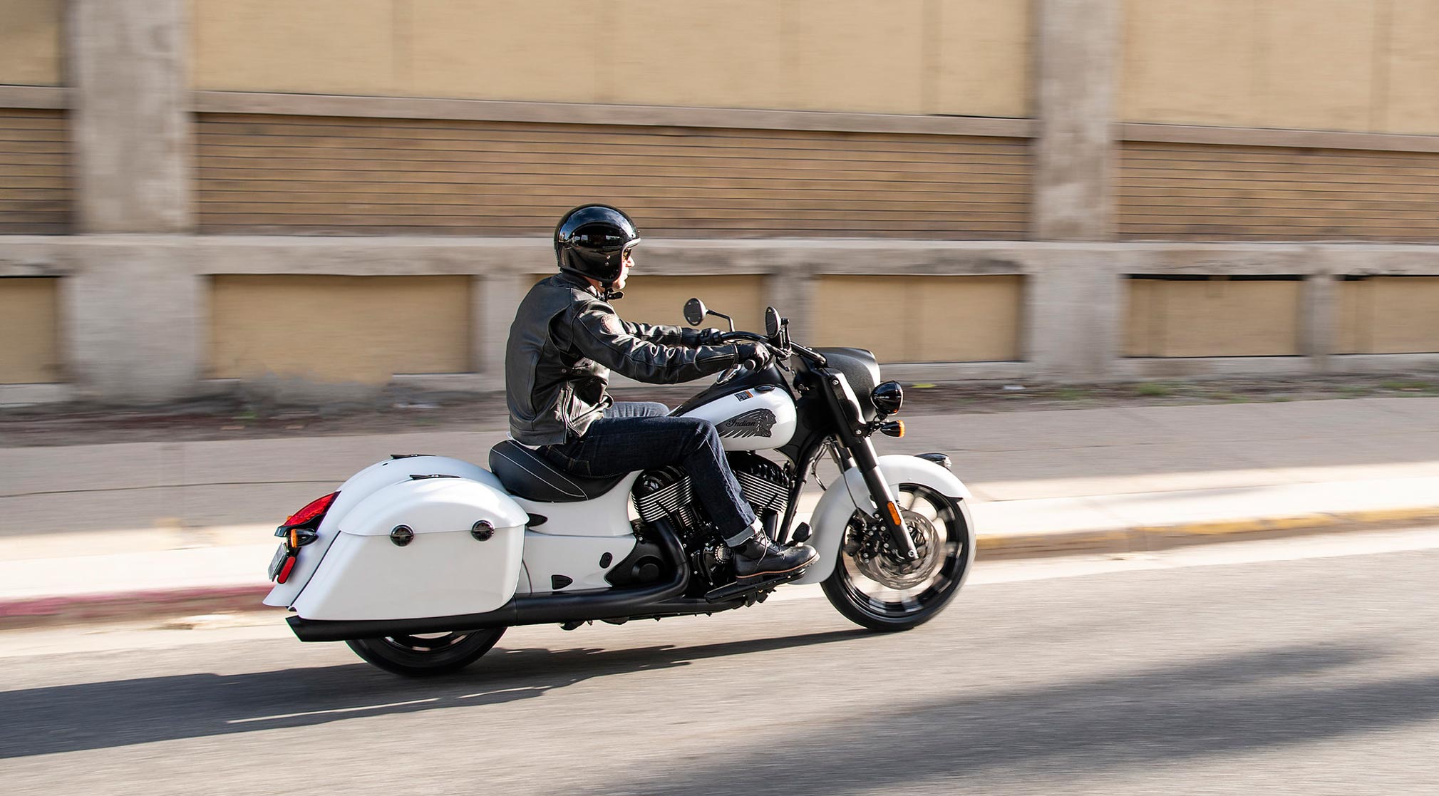 The Indian Springfield® Dark Horse® family has expanded to include a White Smoke option in addition to the original Thunder Black Smoke option. Both options will boast premium gloss black finishes on the engine’s primary, valve, and cam covers, push-rod tubes, and saddlebag hinges. The exhaust has also been fullyblacked out to complete the dark, custom look. Standard features include Ride Modes, Rear Cylinder Deactivation, remotelocking saddlebags, ABS, cruise control, keyless ignition and tire pressure monitoring.