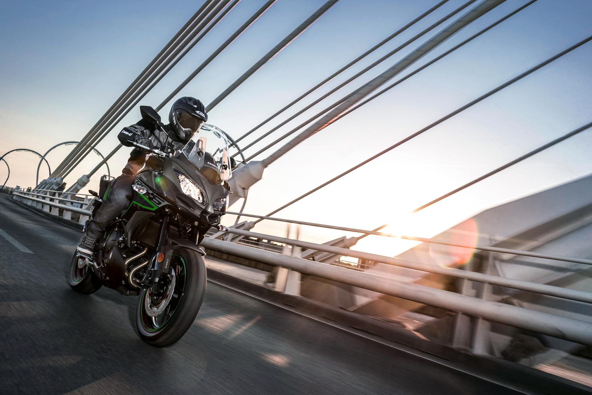 The Versys® 650 combines long-travel suspension, sporty 17-inch wheels, a slim upright riding position and power focused on the low-mid range to produce a highly versatile motorcycle that excels in a wide variety of street-riding situations, and especially on twisty roads.