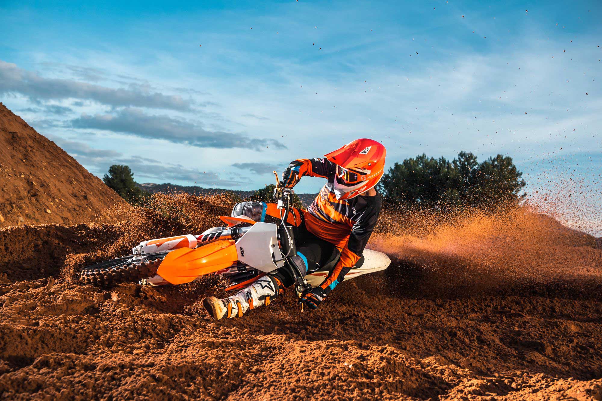 The new KTM 125 SX is the most compact and lightweight of the full-size bikes and delivers a confidence-inspiring ride like no other. A new lightweight chassis teams up with the most competitive 125cc 2-stroke engine to date, delivering superior agility and power to fulfil the demands of any young adrenalin seeker. This 2-stroke screamer is the ultimate entry point into the pro ranks and a sure-fire way to add to the trophy collection.