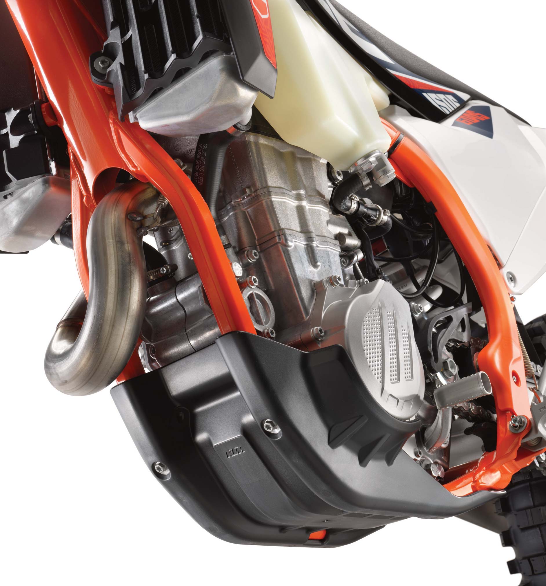 The hugely successful KTM 450 EXC-F power plant has kept its key ingredients the same for 2019 – compact dimensions, relentless performance throughout the rev range and low weight. Fitted with a single overhead-camshaft cylinder head and the latest electronic fuel injection, it churns out horsepower in line with what you’d expect from a pure-bred factory race weapon.