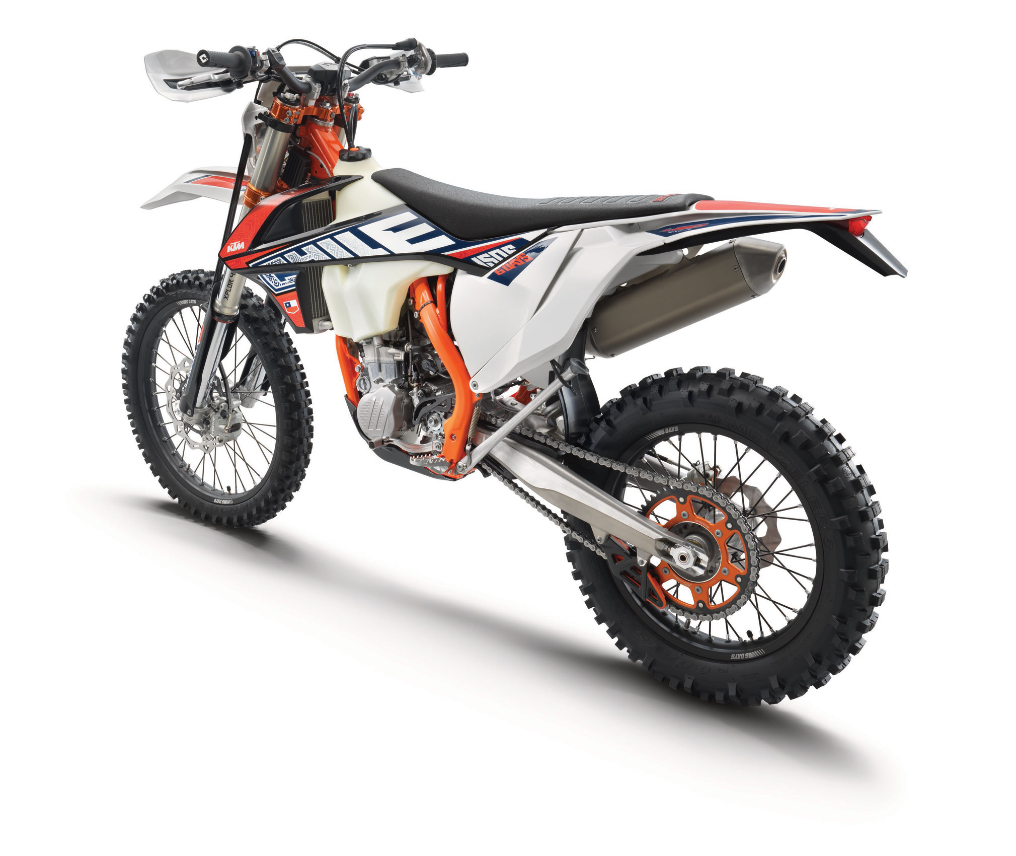 KTM celebrates its prowess in the world of offroad racing with the 450 EXC-F SIX DAYS. Built to perform under the toughest race conditions like those found at the Chilean ISDE, and boasting READY TO RACE componentry, it is well-equipped to take on anything thrown at it.